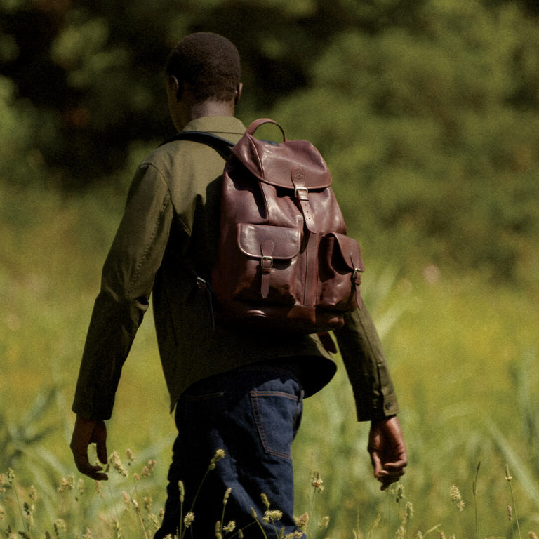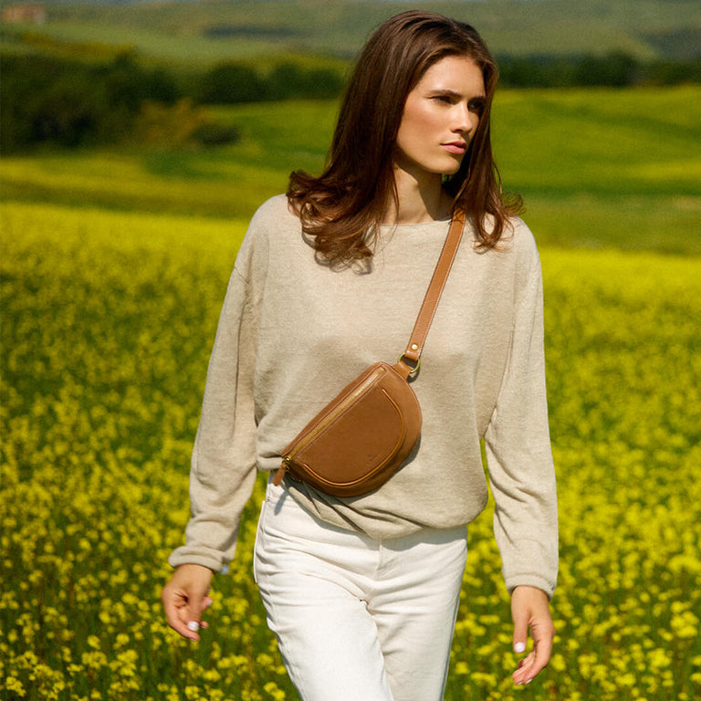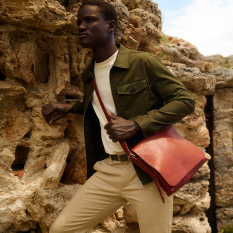 Cestello | Men's one strap backpack in vintage leather color coffee
