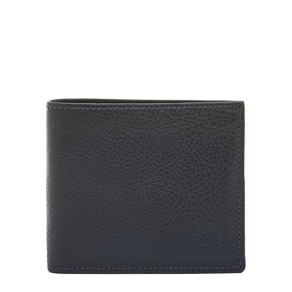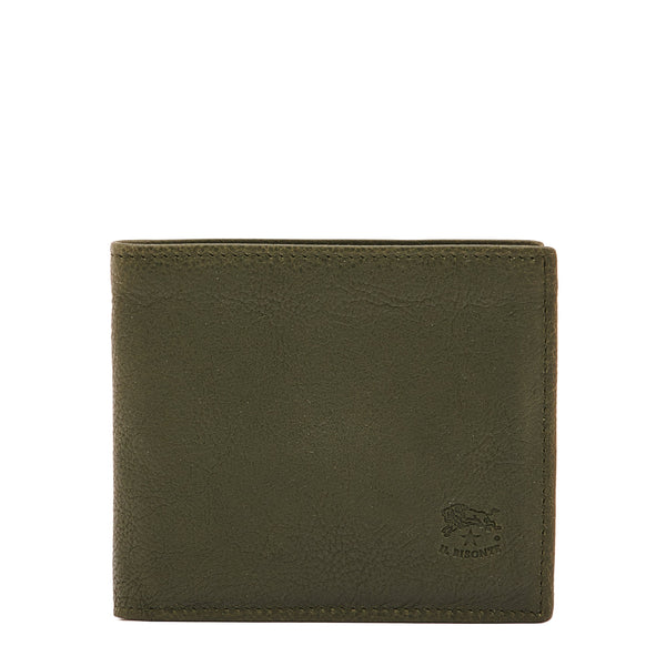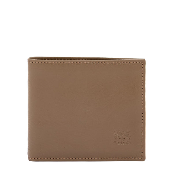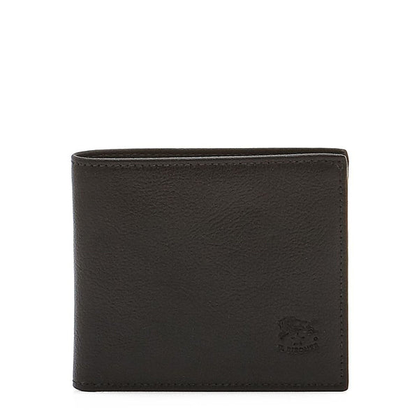 Men's bifold wallet in vegetable tanned cowhide, with compartments for bills, credit cards and ID. Made in Italy by master craftsmen in Il Bisonte's 30 km supply chain. Inside, large unlined compartment for banknotes, 3 card slots and ID pocket in cowhide with concealed snap button closure.
