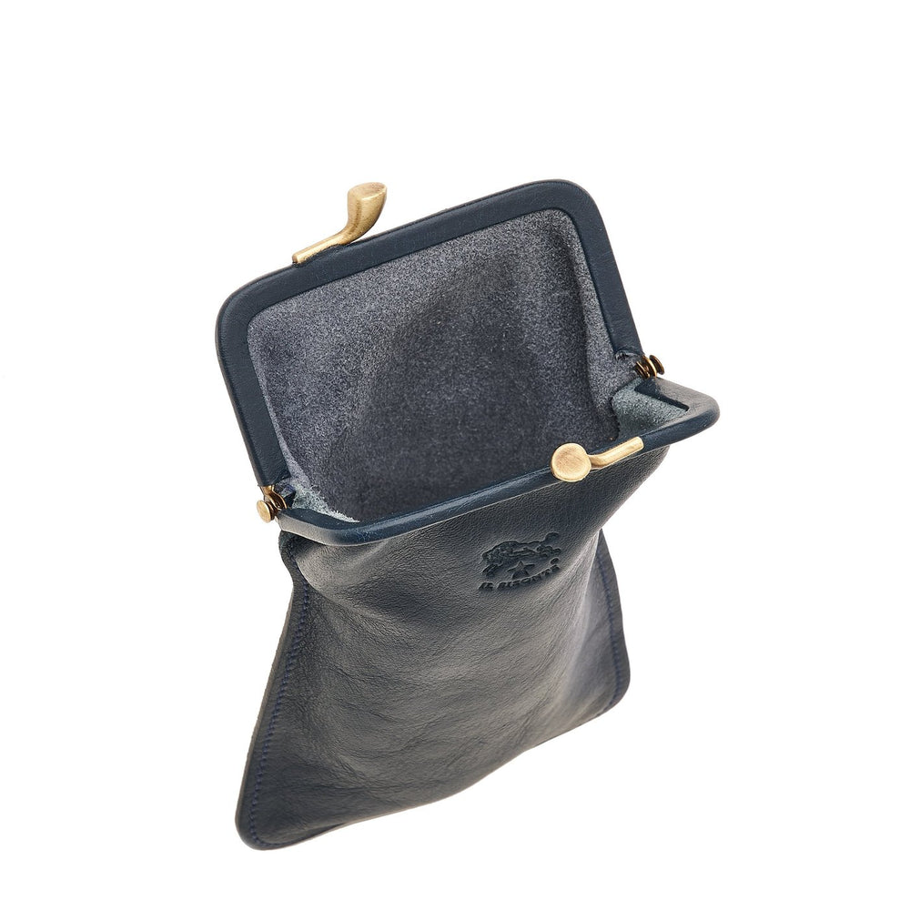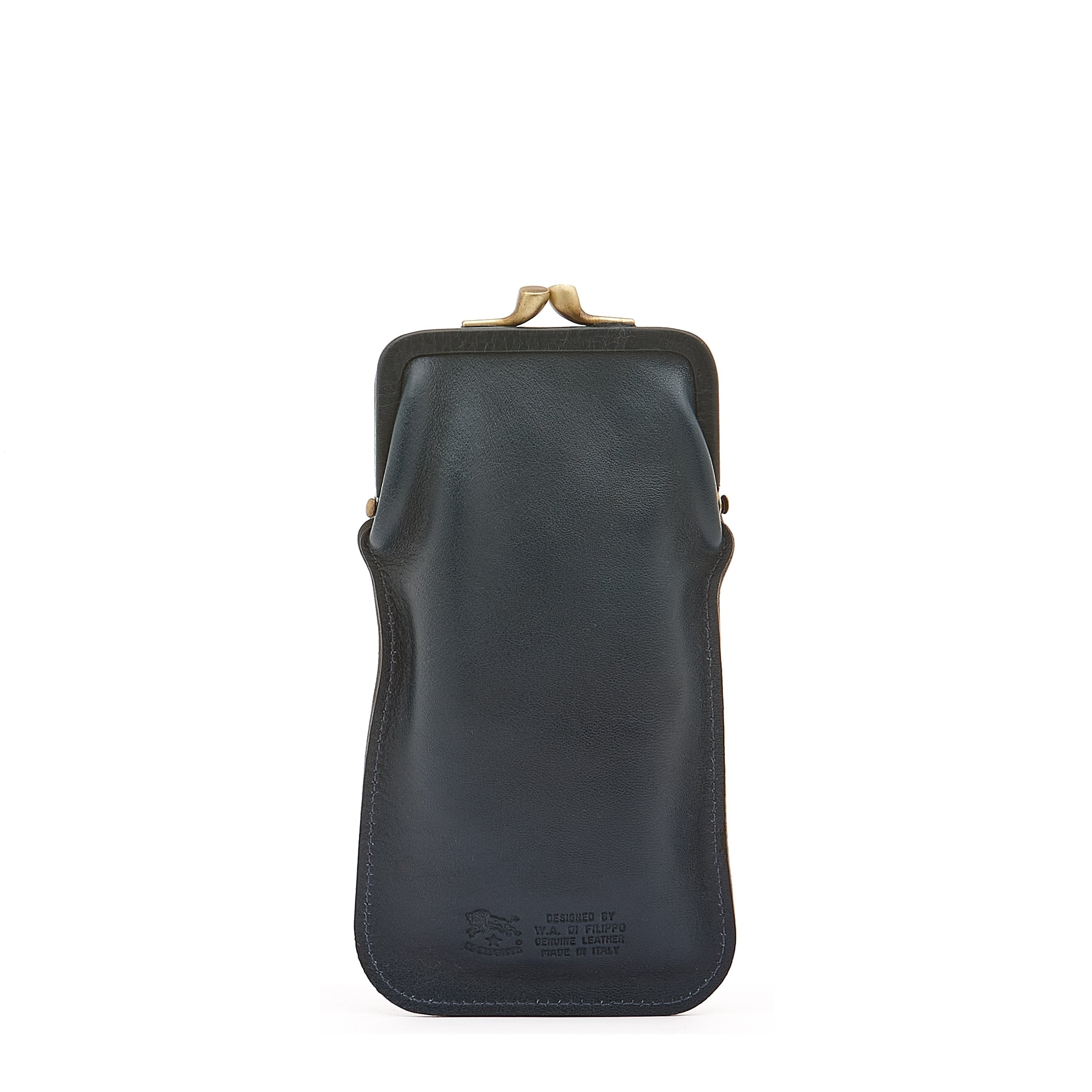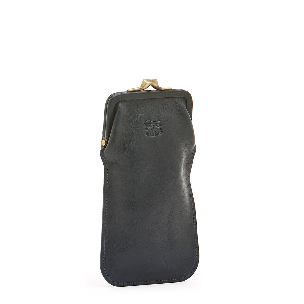 Glasses case with retro snap clasp. Made of vegetable tanned cowhide, in Italy by master craftsmen in Il Bisonte's 30 km supply chain. Brass clasp. Unlined.