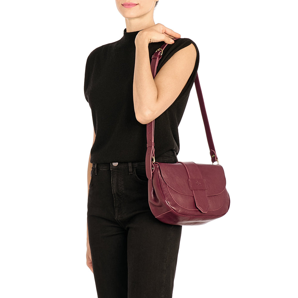 Fausta Medium | Women's crossbody bag in leather color black cherry