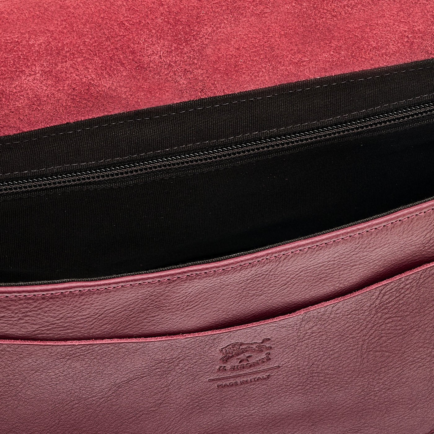 Women's bag in soft vegetable-tanned cowhide leather, can be worn on the shoulder or crossbody. 100% made in Italy, produced in Tuscany, in the province of Florence by master artisans in Il Bisonte's 30-km supply chain. Adjustable shoulder strap with buckle. Front flap with hidden magnetic snap button closure. Open flap pocket featuring iconic wave design. Back pocket with button. Lined in cotton canvas. Internal zip pocket. Il Bisonte bags and accessories are made to last a long time while preserving their beauty and uniqueness. To care for cowhide leather use the natural calendula-based cream kit.