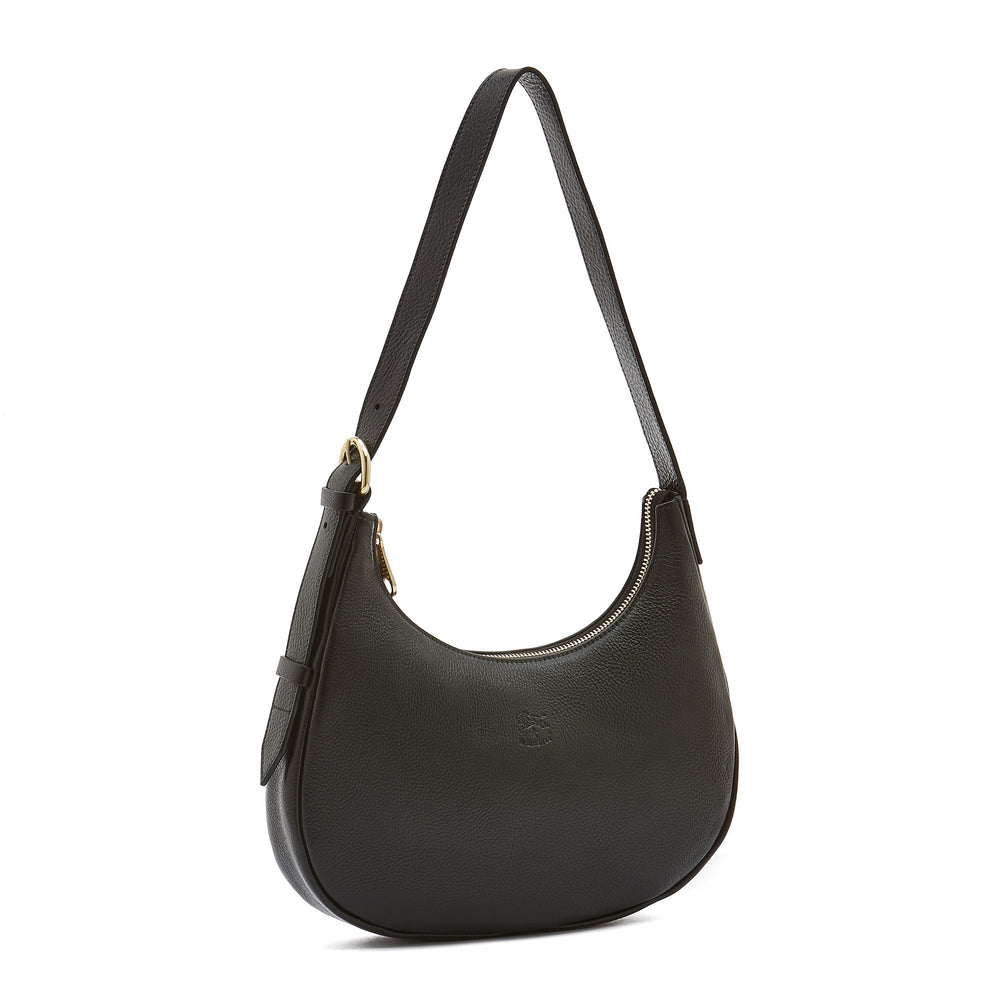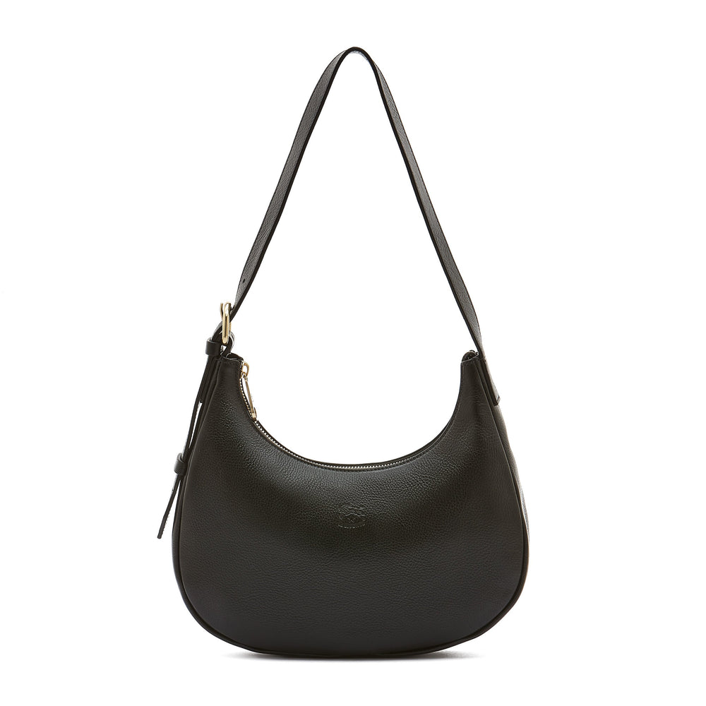 Women's small shoulder bag with adjustable buckle shoulder strap on the side. Zipper closure. The interior, lined in cotton canvas, includes a zippered pocket and an open pocket. 100% made in Italy, produced in the province of Florence by the master artisans of Il Bisonte's 30-Km supply chain.