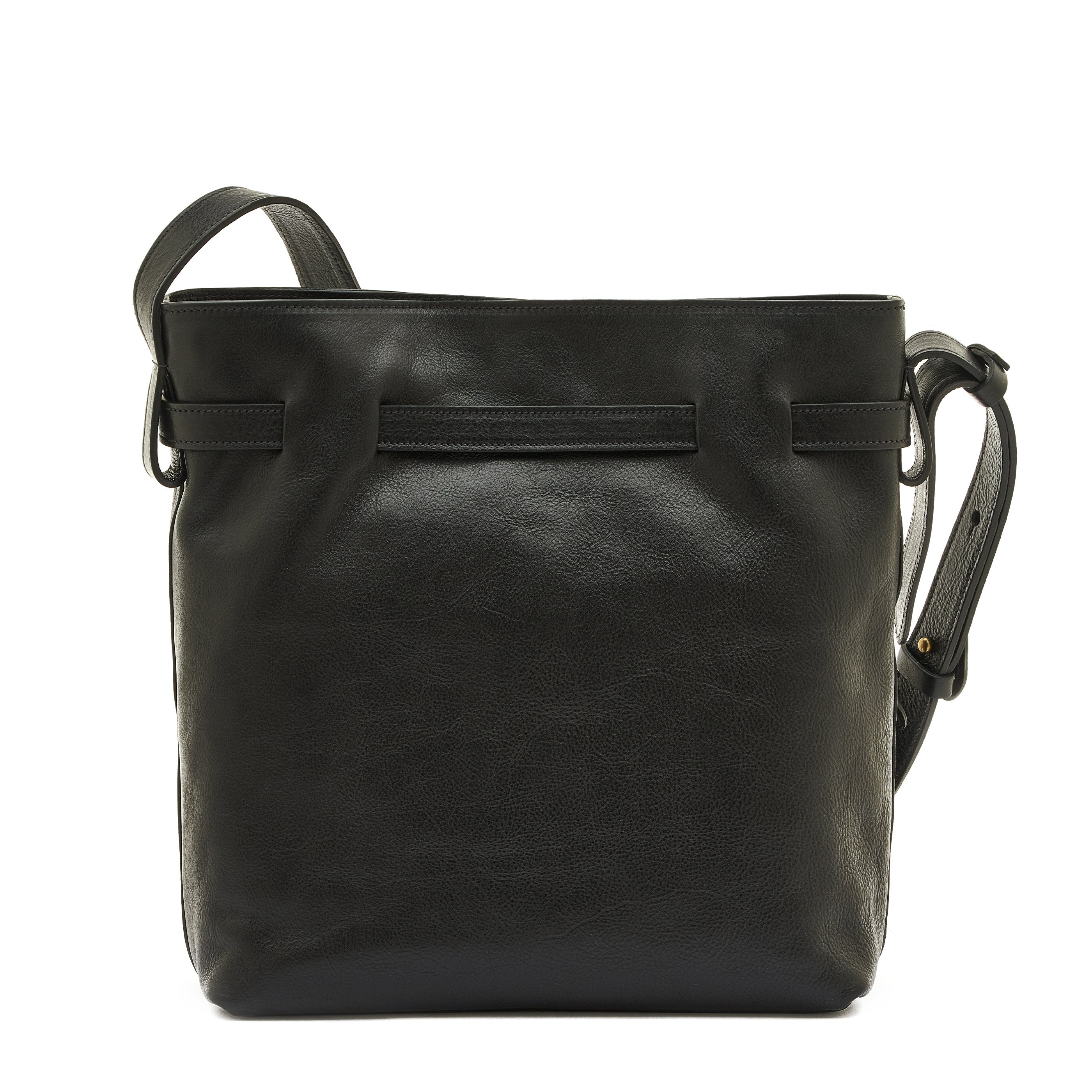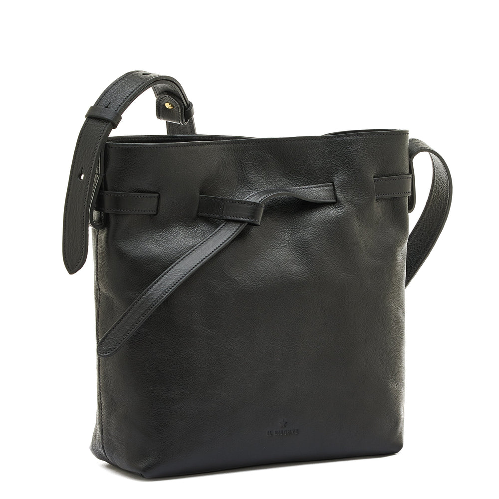 Sac seau pour femme en cuir à tannage végétal. Son design épuré est rendu unique par le cordon en cuir qui en enveloppe le corps. Le sac se porte sur l'épaule ou en bandoulière grâce à la bandoulière réglable à l'aide d'un bouton de col à vis en laiton. Fermeture à l'aide d'un bouton aimanté doublé. L'intérieur, doublé en toile de coton, est doté d'une poche ouverte et d'une lanière pratique fermée à l'aide d'un bouton qui permet d'avoir toujours à portée de main son porte-clés. 100% made in Italy.