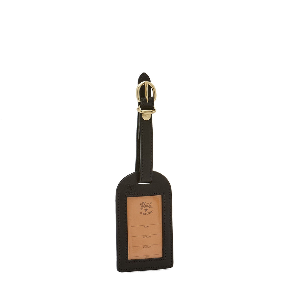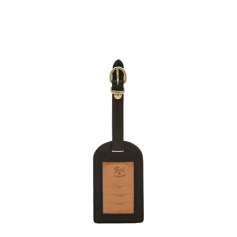 Etiquette de bagage en cuir de vachette à tannage végétal. Produite en Italie par les maîtres artisans de la filière à km 30 de Il Bisonte.Lanière réglable avec une boucle en laiton.