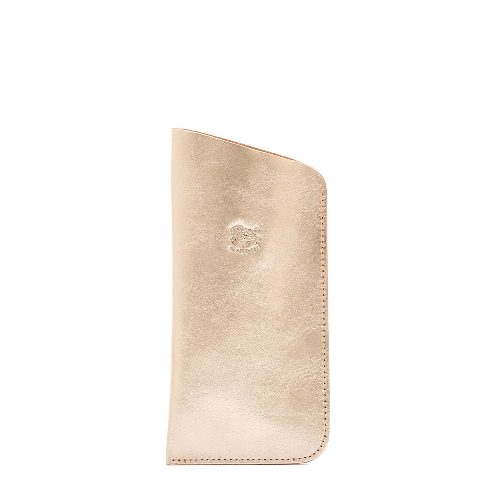 Etui à lunettes en cuir de vachette à tannage végétal. Produit en Italie par les maîtres artisans de la filière à km 30 de Il Bisonte.Intérieur non doublé.