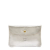 Pochette unisexe en cuir de vachette à tannage végétal. Fabriquée en Italie par les maîtres artisans du circuit court à 30 km de Il Bisonte. Fermeture par bouton pression visible en laiton doré. Intérieur non doublé.