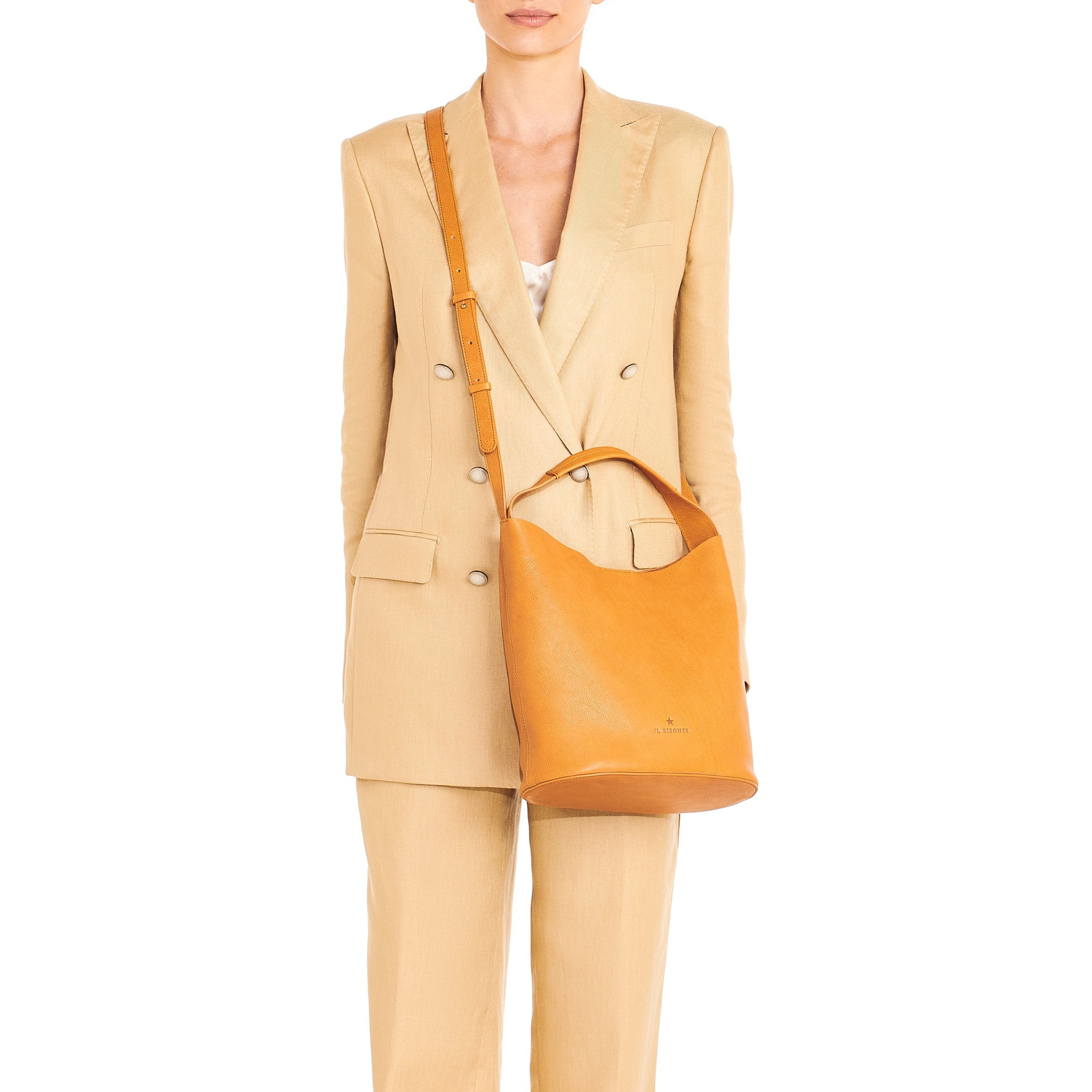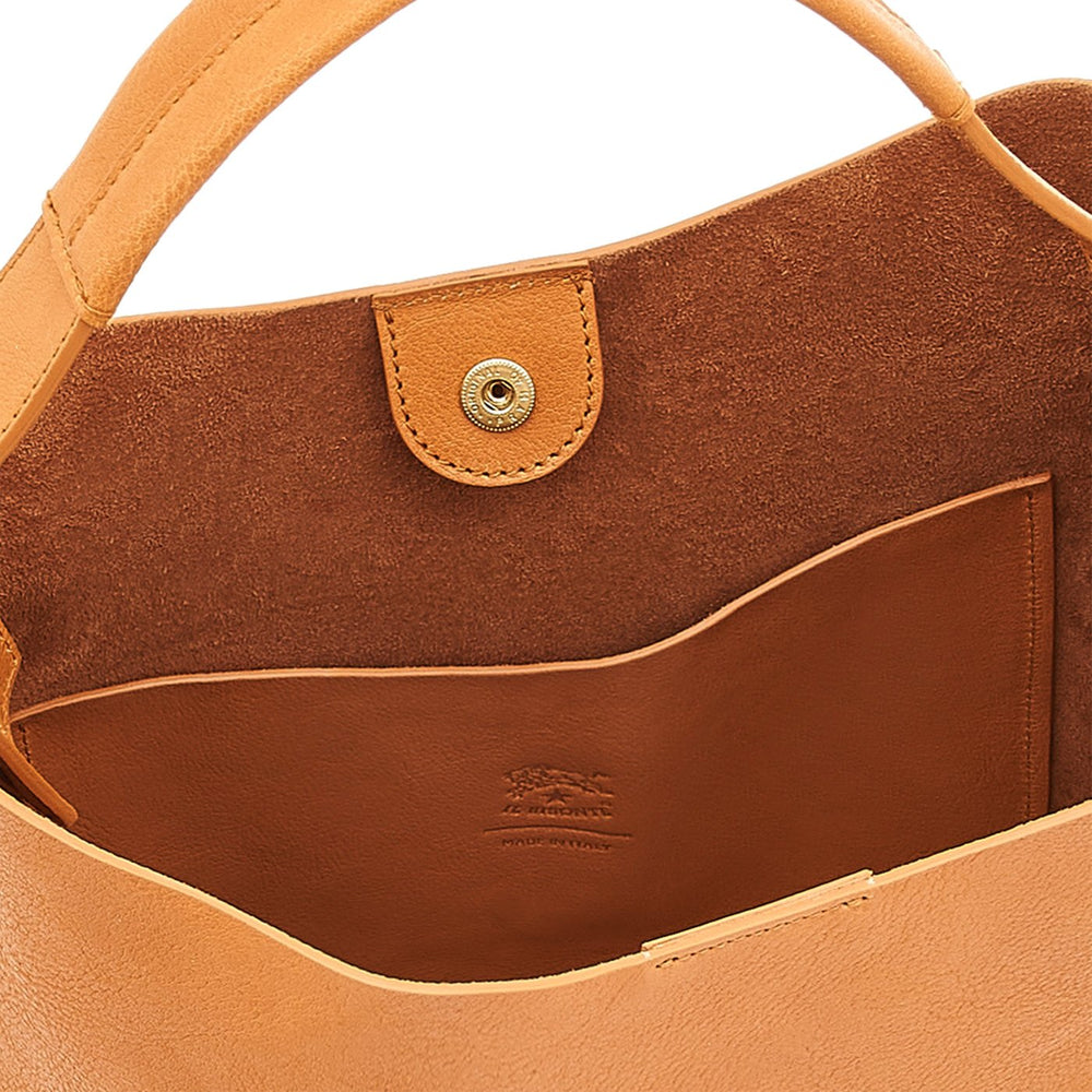 Sac seau pour femme en cuir  à tannage végétal. Fabriquée en Italie par les maîtres artisans du circuit court à 30 km de Il Bisonte.