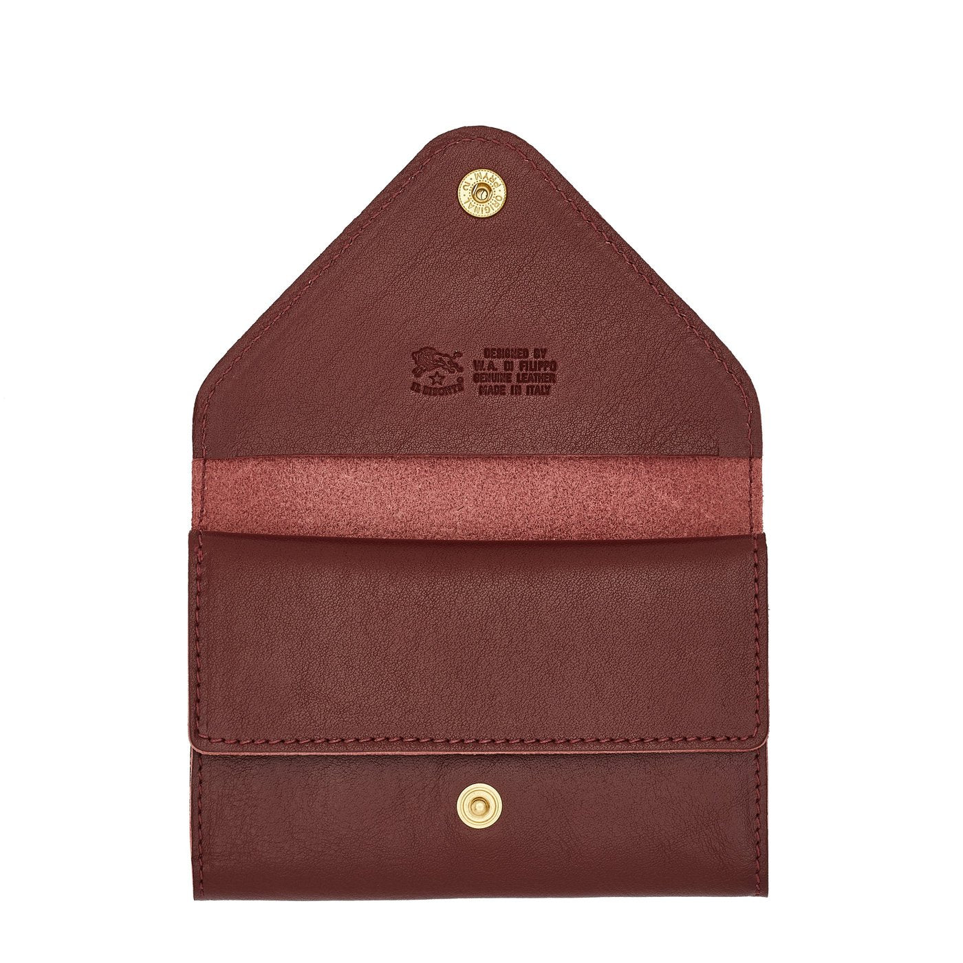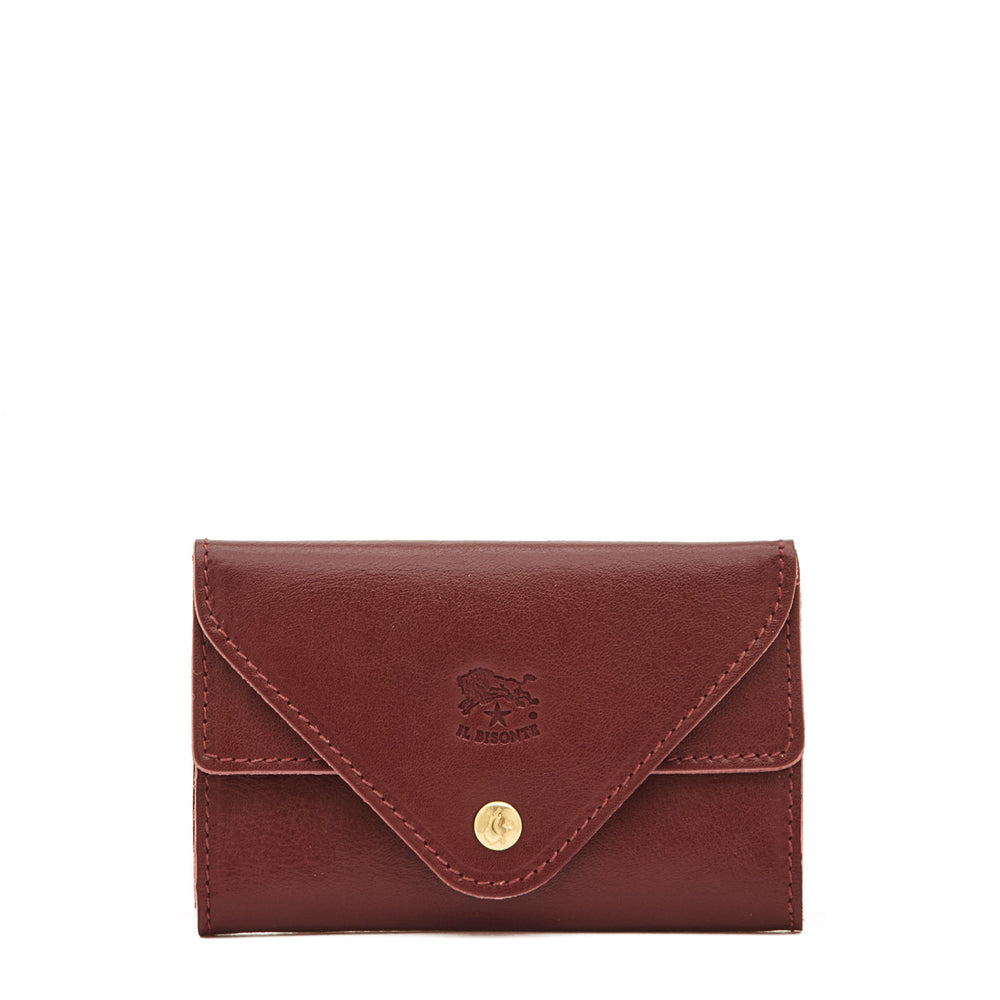 Porte-cartes avec fermeture à enveloppe et poche intérieure avec rabat. Réalisé en cuir de vachette à tannage végétal, il est produit en Italie par les maîtres artisans de la filière à km 30 de Il Bisonte.Fermetures avec bouton pression en laiton.