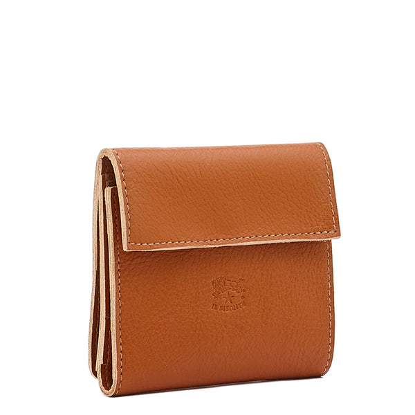Portefeuille pour femme en cuir couleur caramel