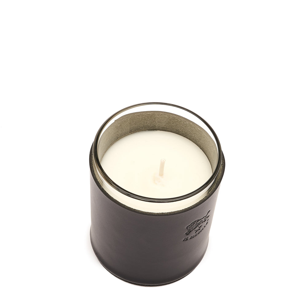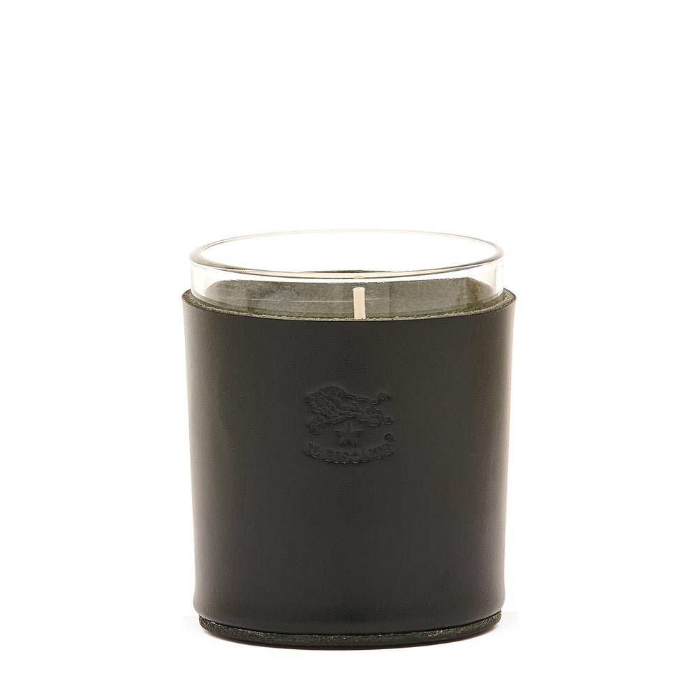 Bougie parfumée à la vanille qui introduit au cœur de la maison le style unique de Il Bisonte. Pot en verre transparent doublé en cuir à tannage végétal structuré, avec base doublée en cuir et intérieur non doublé. 100% made in Italy.
