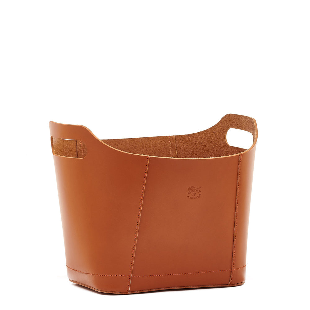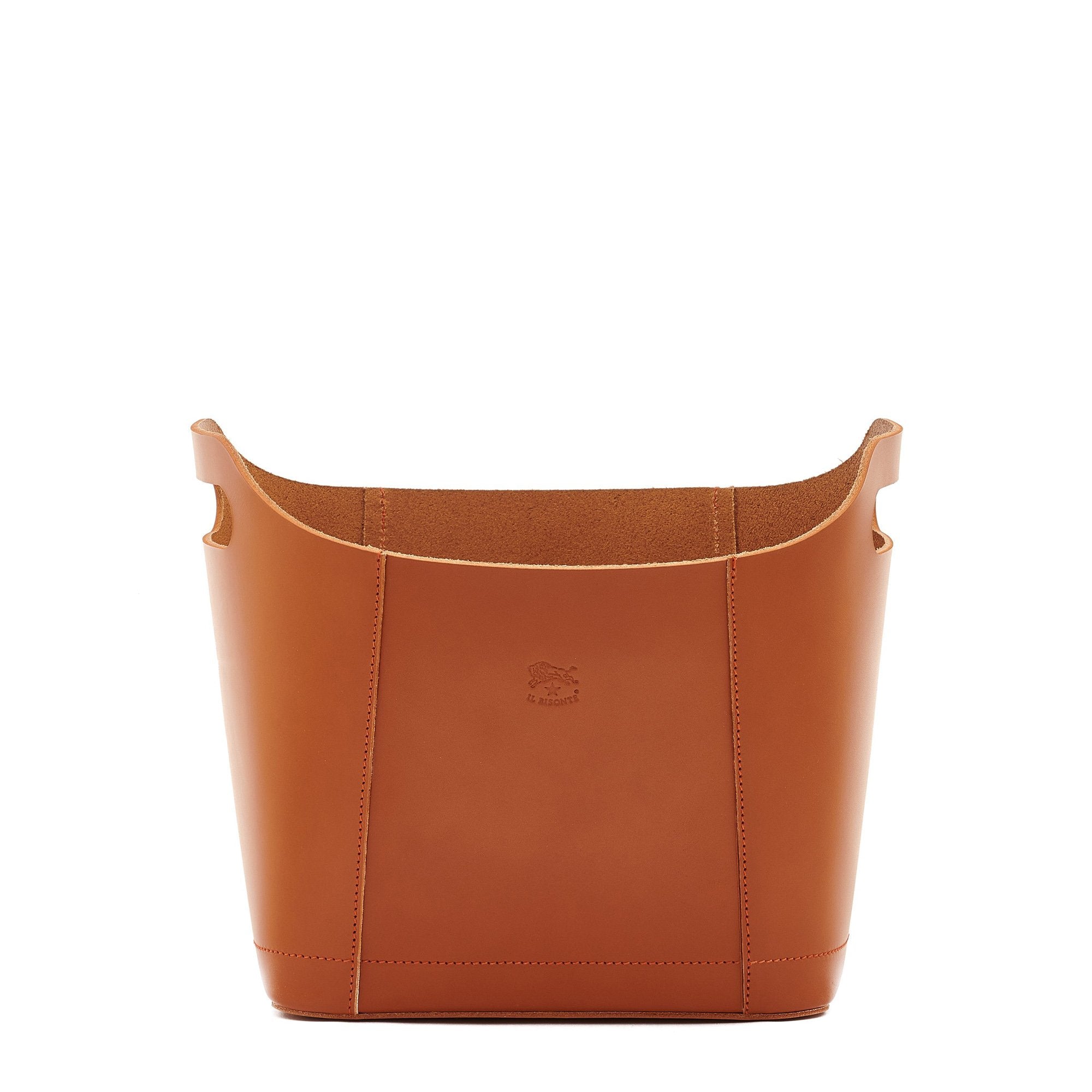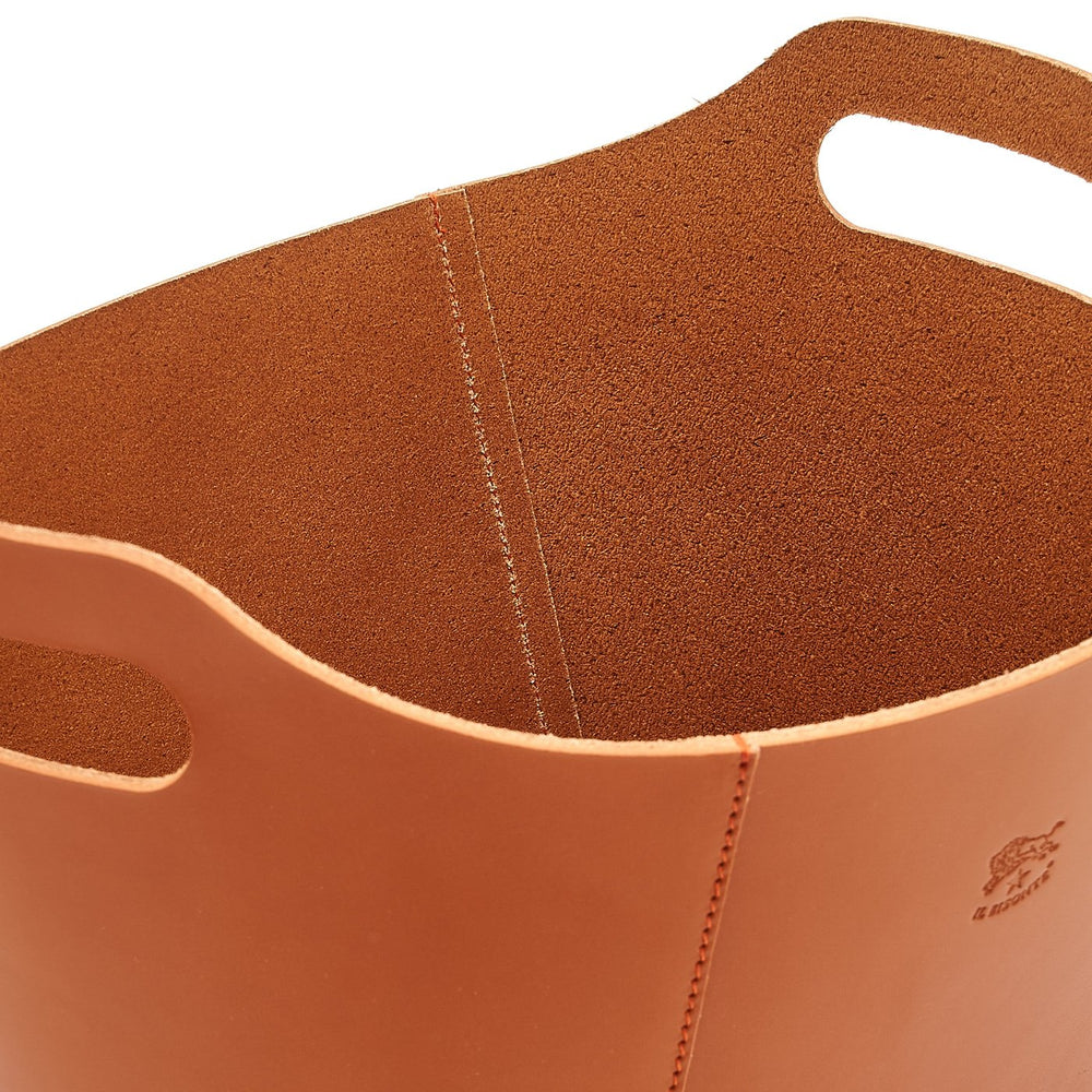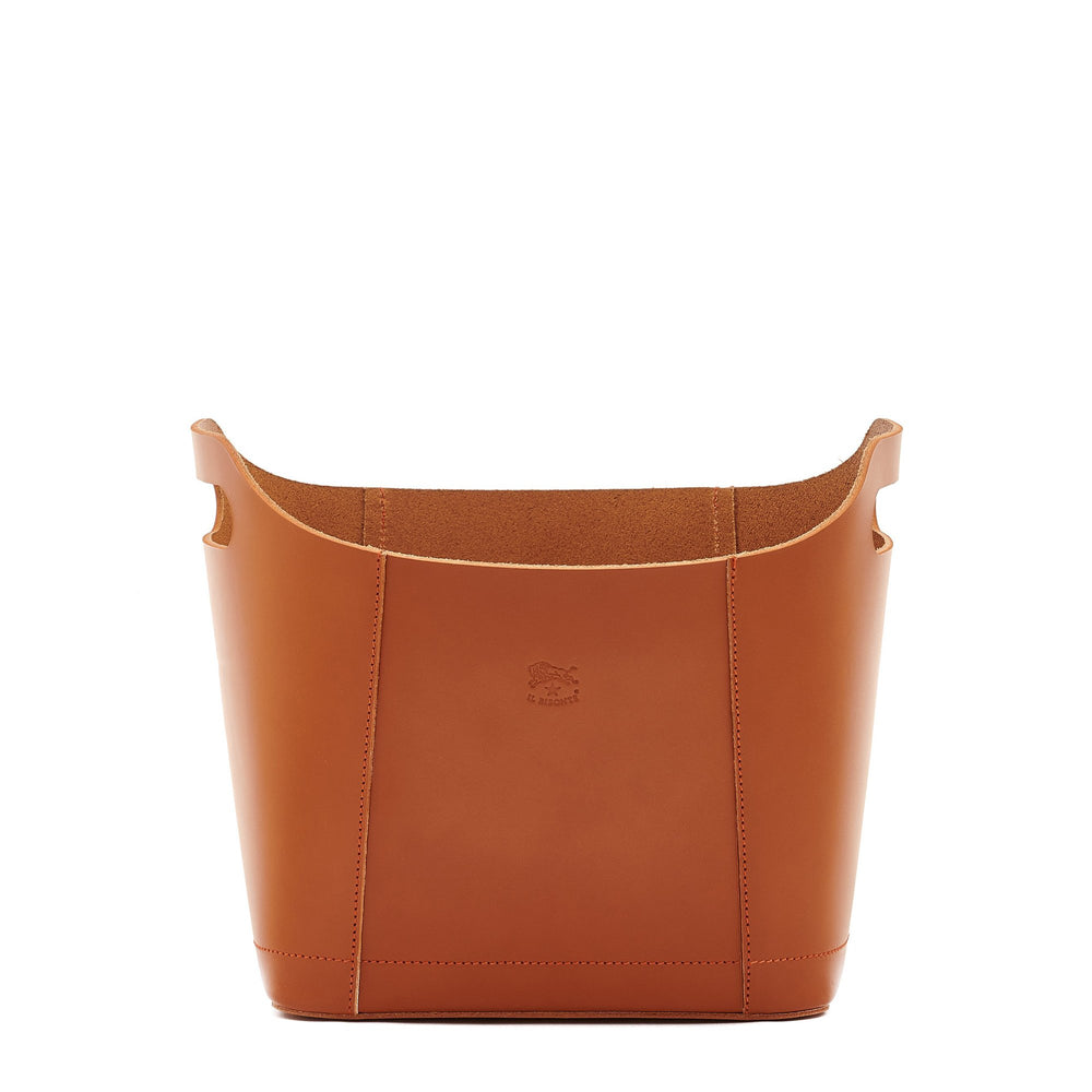Boîte en cuir à tannage végétal structuré qui introduit au cœur de la maison le style unique de Il Bisonte. Base doublée. Deux trous font office de poignées. 100% made in Italy.