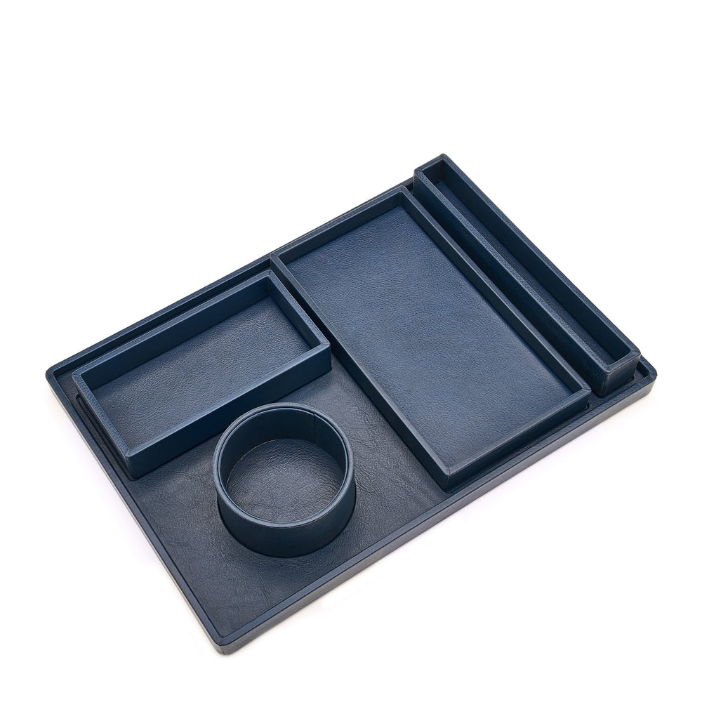 Précieux canteen tray dessiné par Shawn Henderson pour la collection capsule de design There’s a home for everything. La base modelée abrite quatre récipients multifonctions aux formes et aux tailles variées. Structure en bois recouverte de cuir à tannage végétal. Base extérieure recouverte de daim. 100% made in Italy, ce plateau est produit près de Florence par les maîtres artisans du circuit court de 30 km de Il Bisonte.