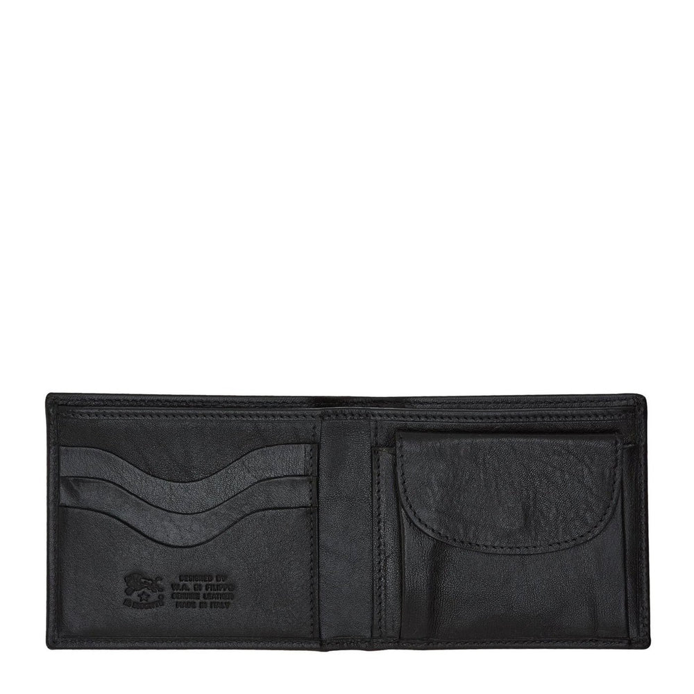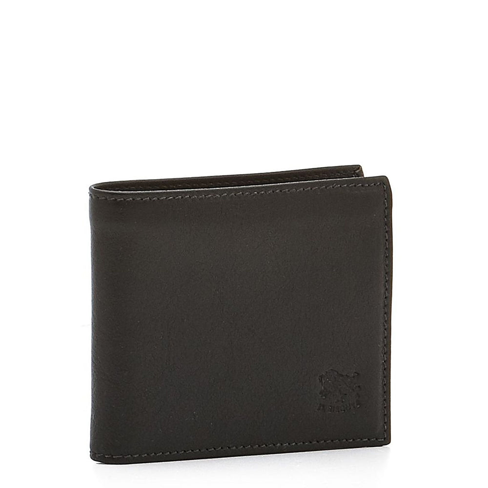 Portefeuille à deux volets pour homme en cuir de vachette à tannage végétal, avec poches pour billets, cartes de crédit et docunents. Produit en Italie par les maîtres artisans de la filière à km 30 de Il Bisonte.A l'intérieur, un grand compartiment non doublé pour billets, 3 poches pour cartes et 1 poche porte-docunents en cuir de vachette avec fermeture à bouton pression caché.