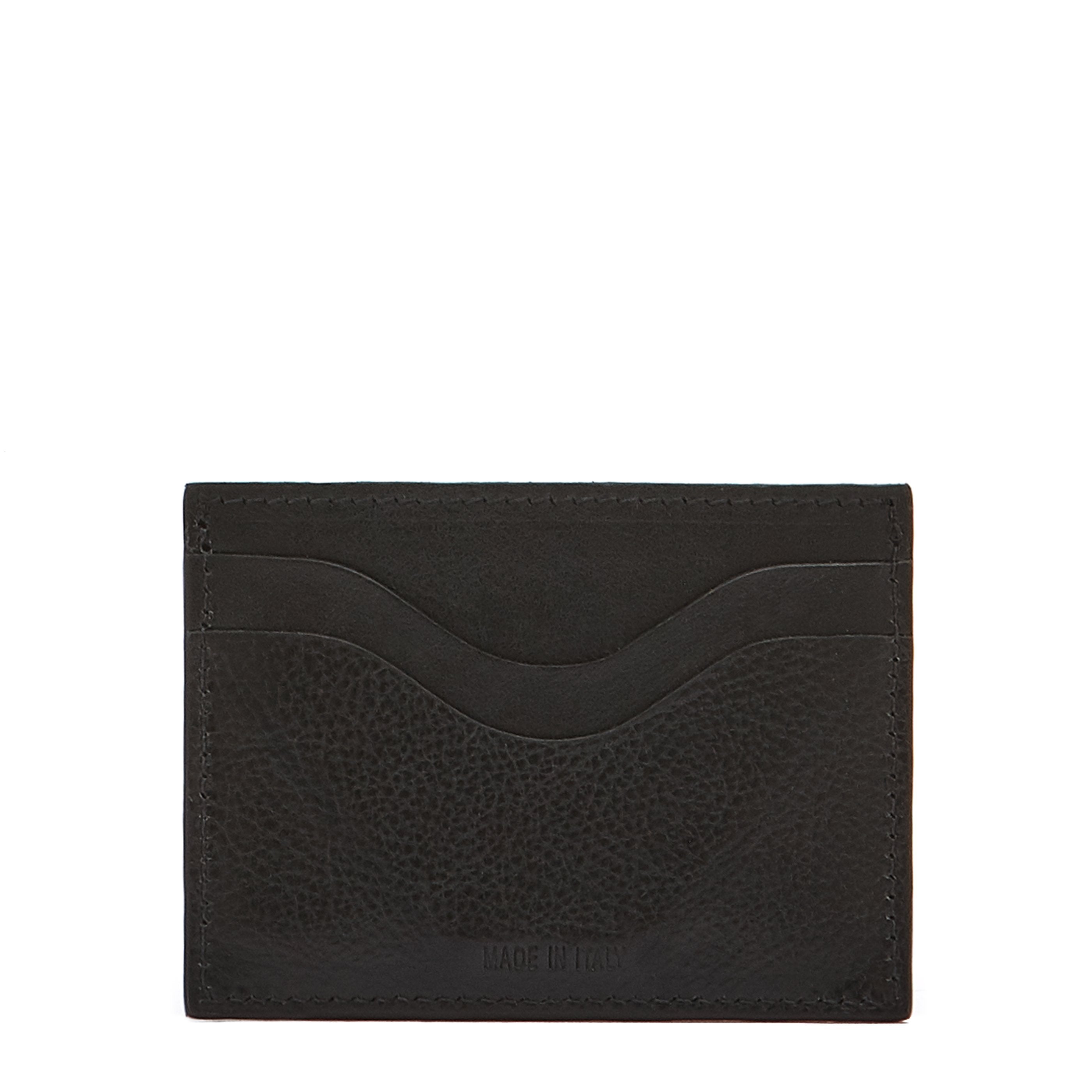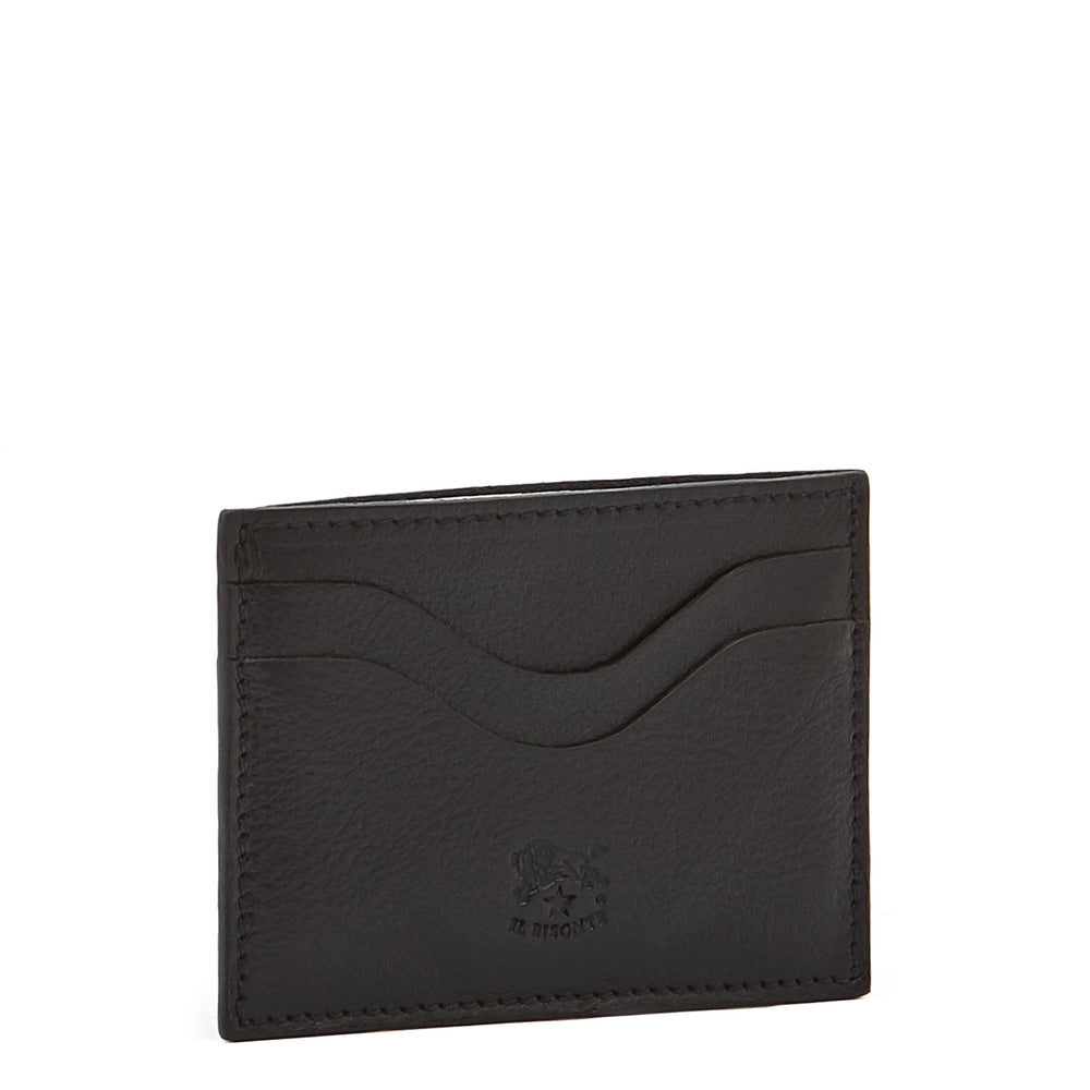 Porte-cartes de crédit en cuir de vachette à tannage végétal avec poche porte-docunents. Produit en Italie par les maîtres artisans de la filière à km 30 de Il Bisonte.4 poches porte-cartes. 1 porche porte-docunents.