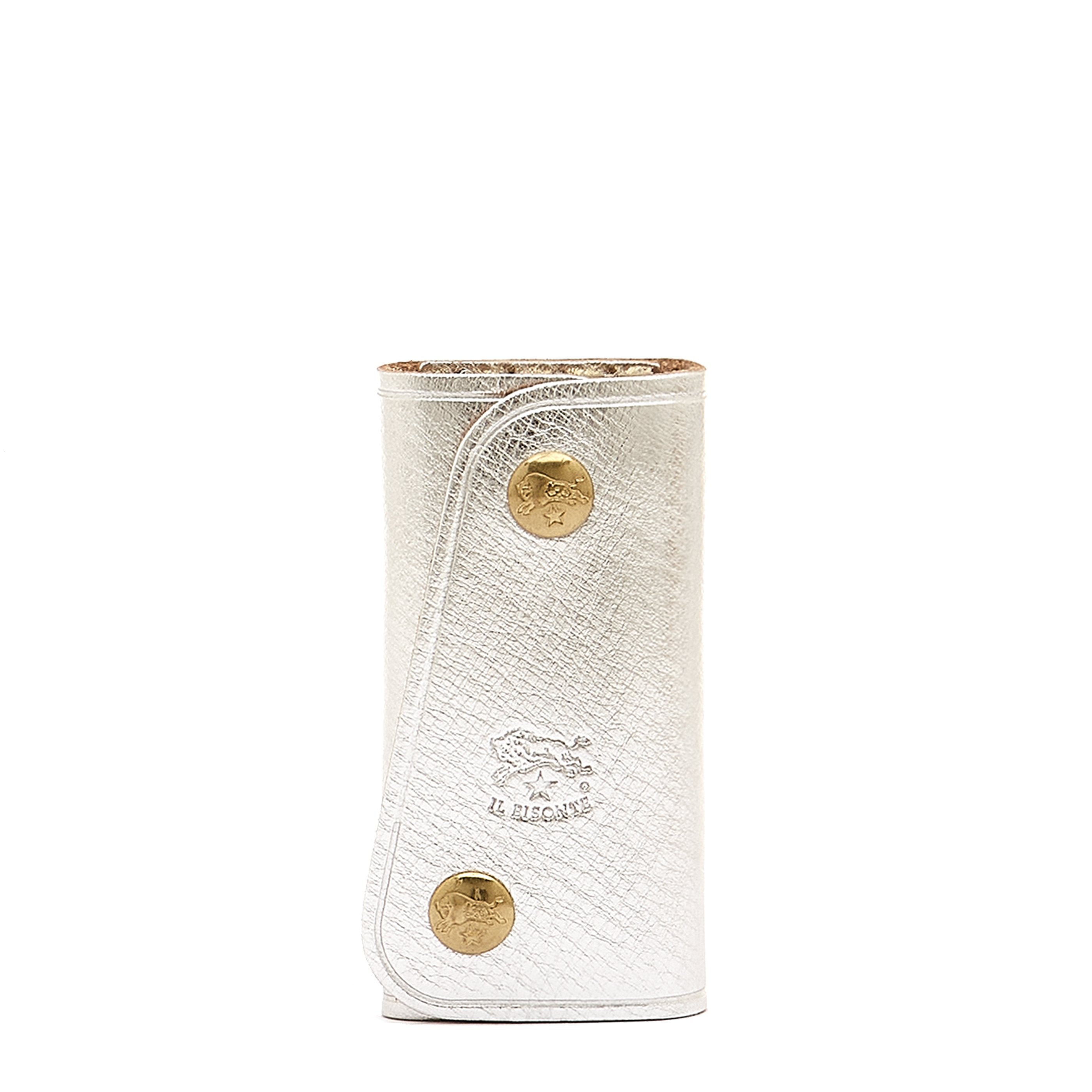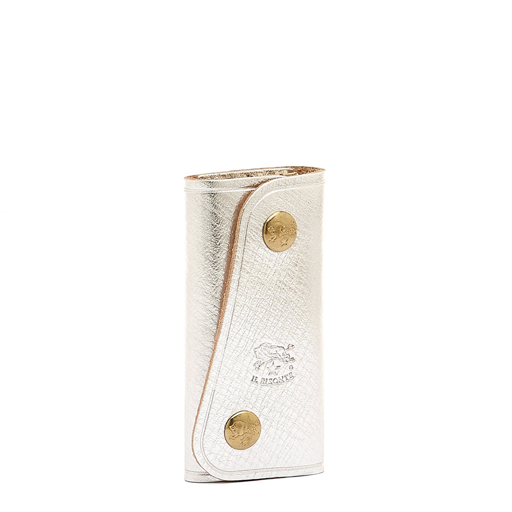 Porte clefs en cuir métallisé couleur métallique argent