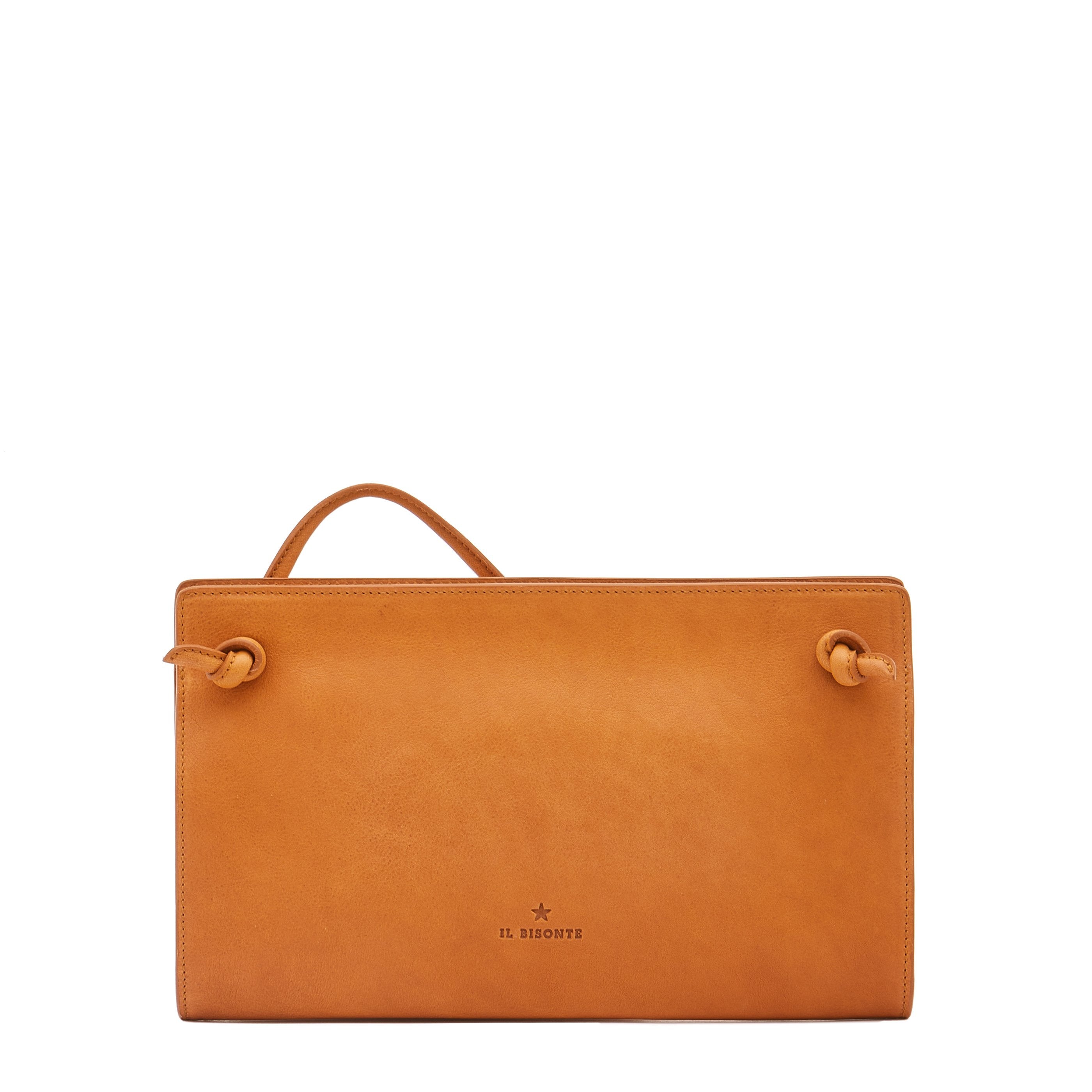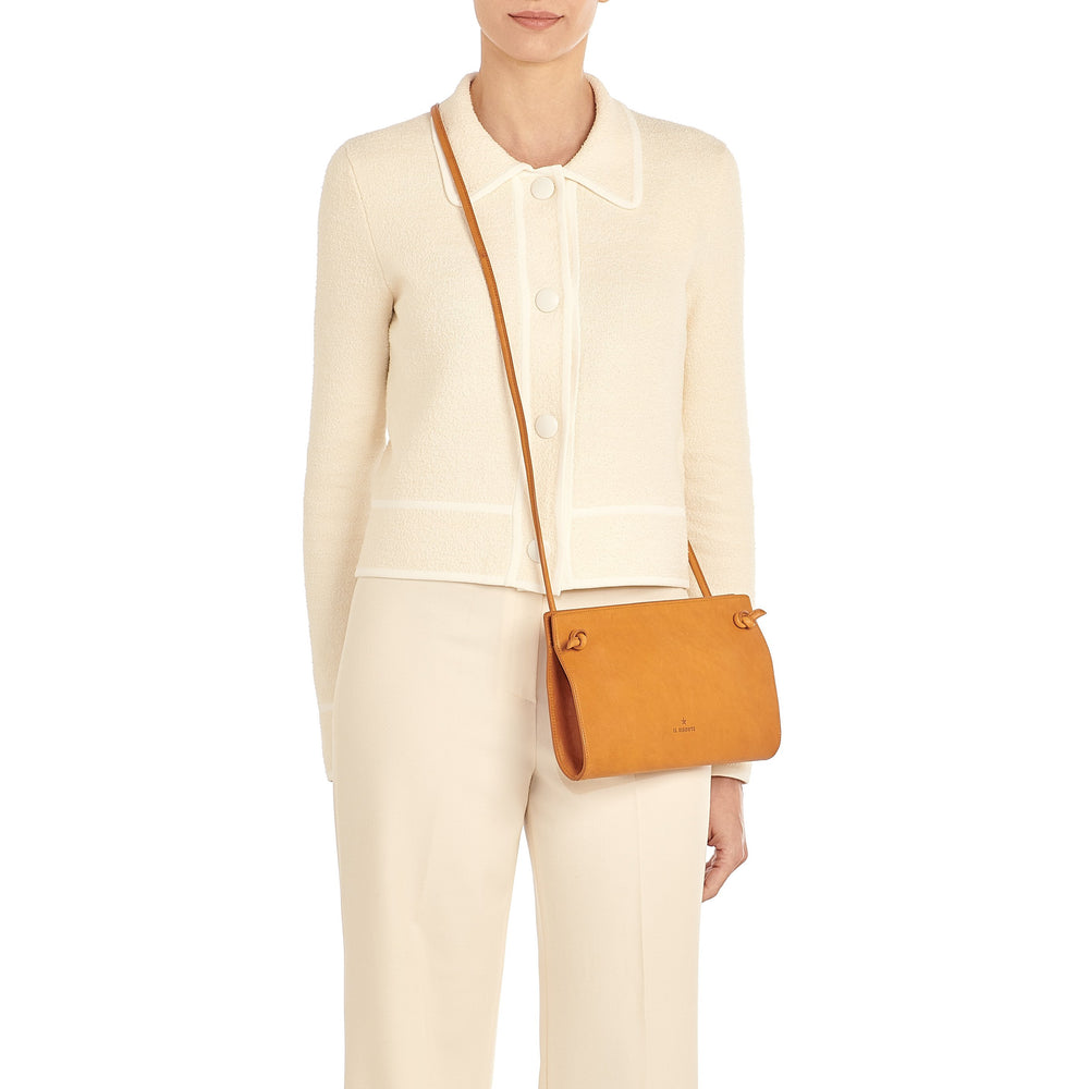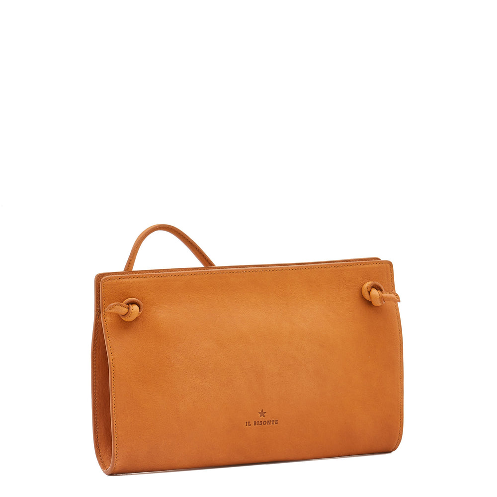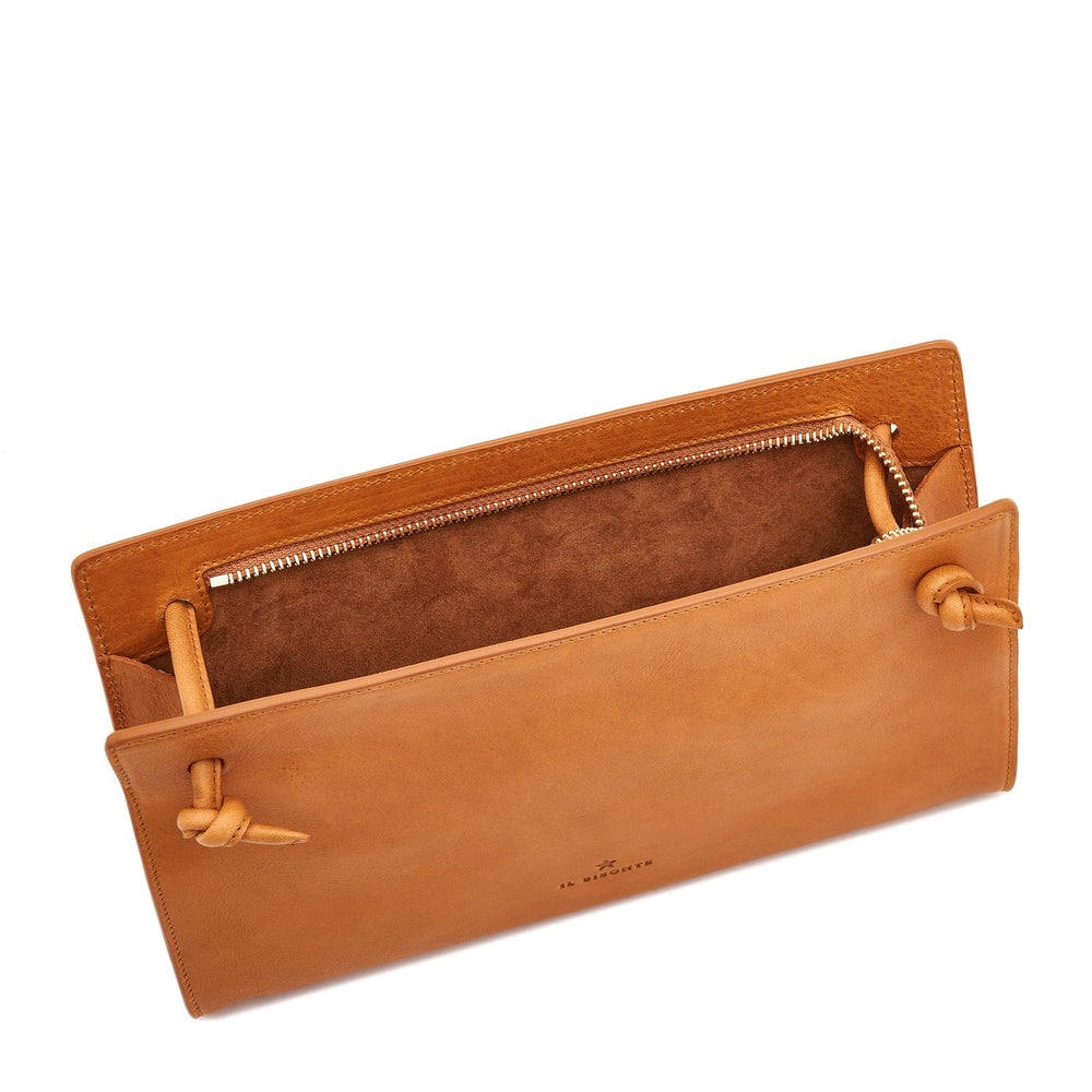 Sac bandoulière pour femme en cuir vintage à tannage végétal. La bandoulière est fixée au corps du sac à l'aide des nœuds iconiques employés en tant qu'élément fonctionnel et esthétique. Fermeture éclair avec tirette en cuir et petit bouton latéral pour une fixation sur le côté du sac. Intérieur doublé en daim. 100% made in Italy.