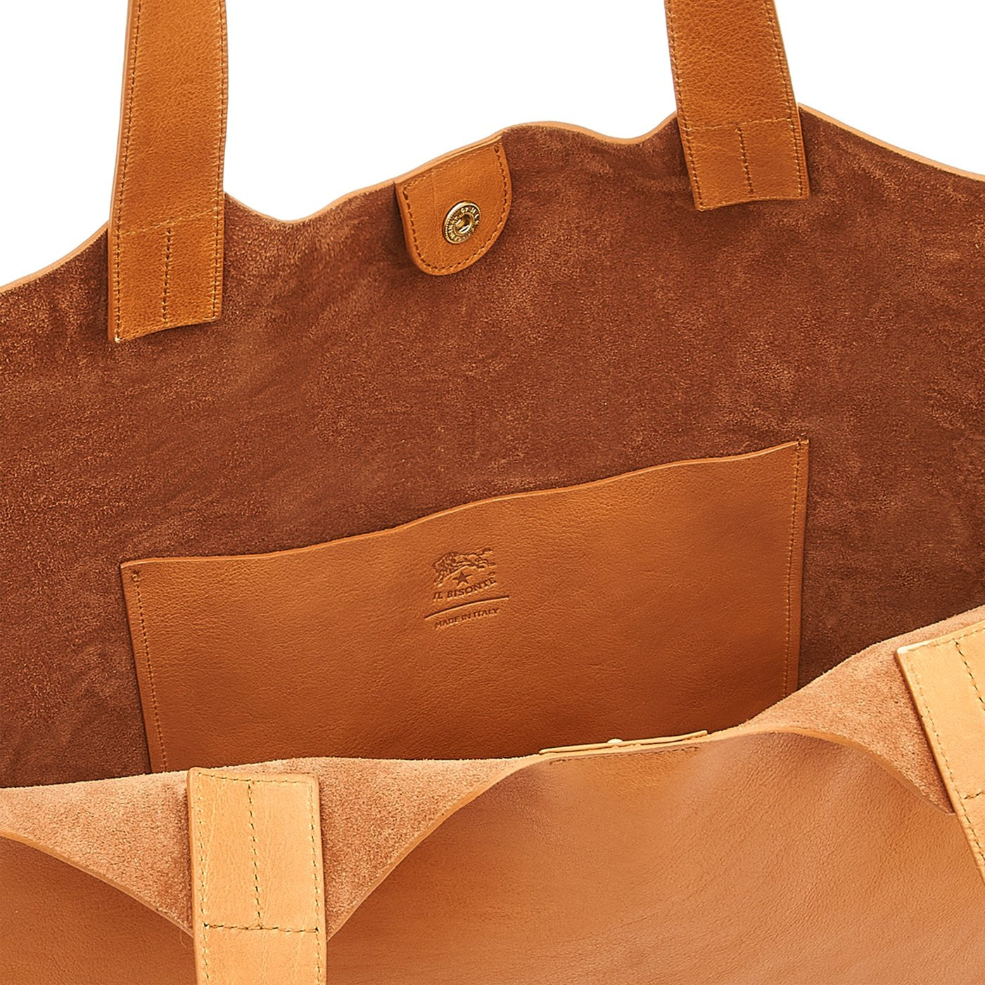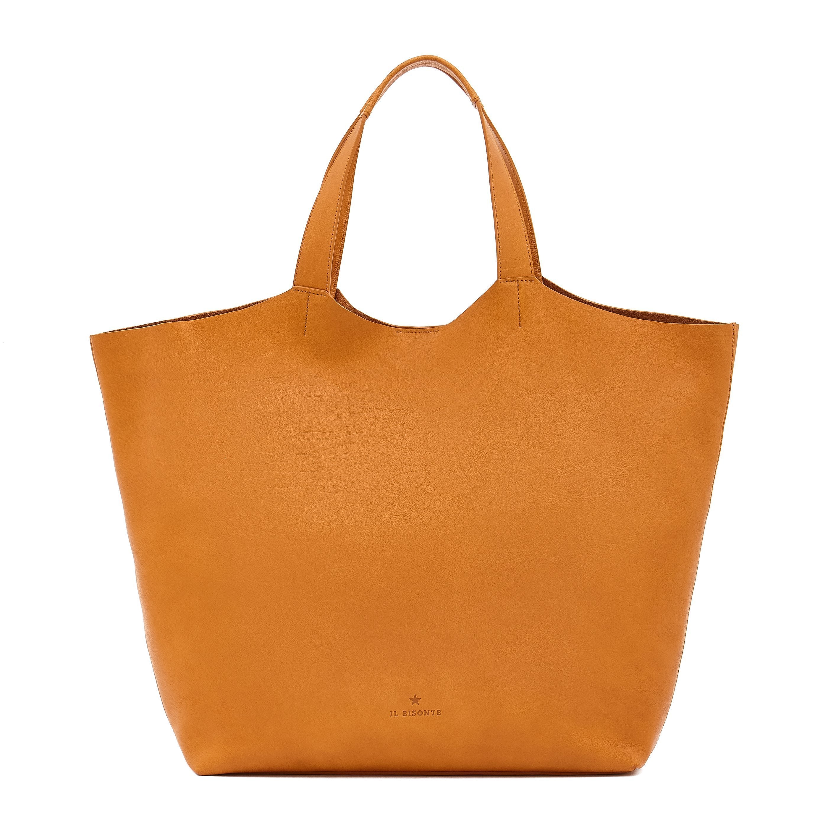 Sac fourre-tout en cuir à tannage végétal, 100% made in Italy, ce sac est produit près de Florence par les maîtres artisans du circuit court de 30 km de Il Bisonte.