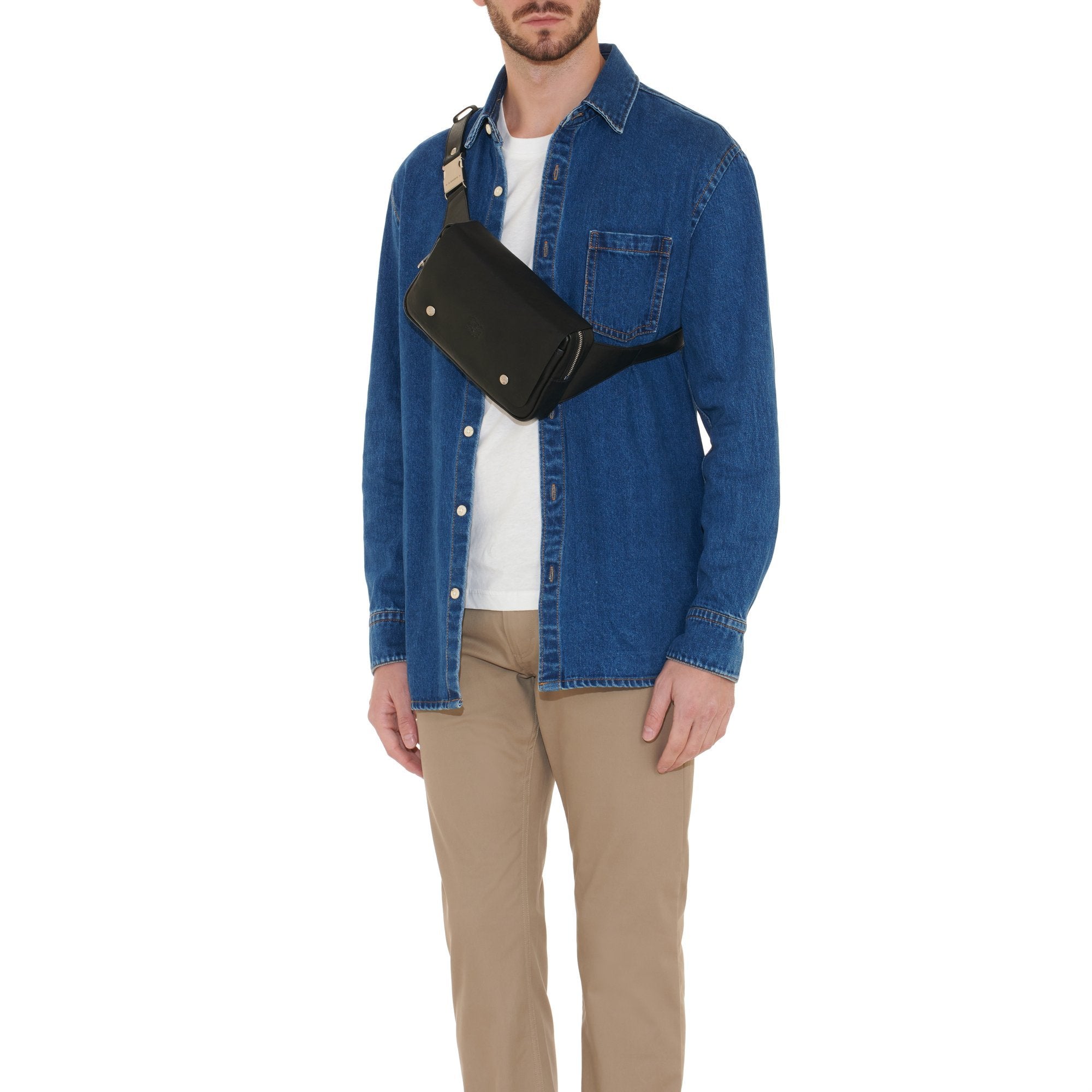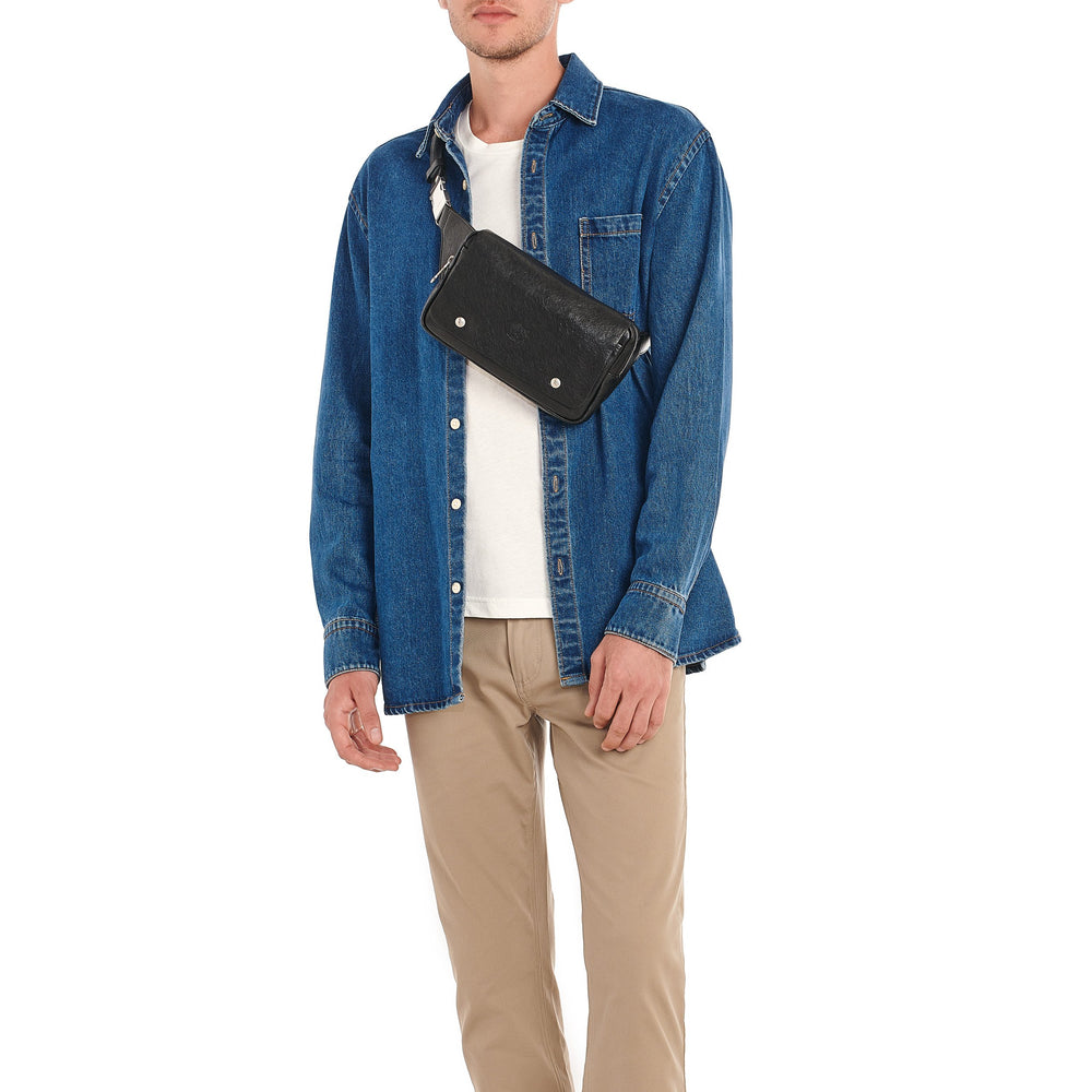 Sac banane avec ceinture réglable à l'aide d'une boucle, avec fermeture à pression. Rabat avec boutons pression. Poche avant sous le rabat ouverte. Fermeture éclair. L'intérieur, doublé en toile de coton, abrite une poche avec fermeture éclair. 100% made in Italy, ce sac est produit près de Florence par les maîtres artisans du circuit court de 30km de Il Bisonte.