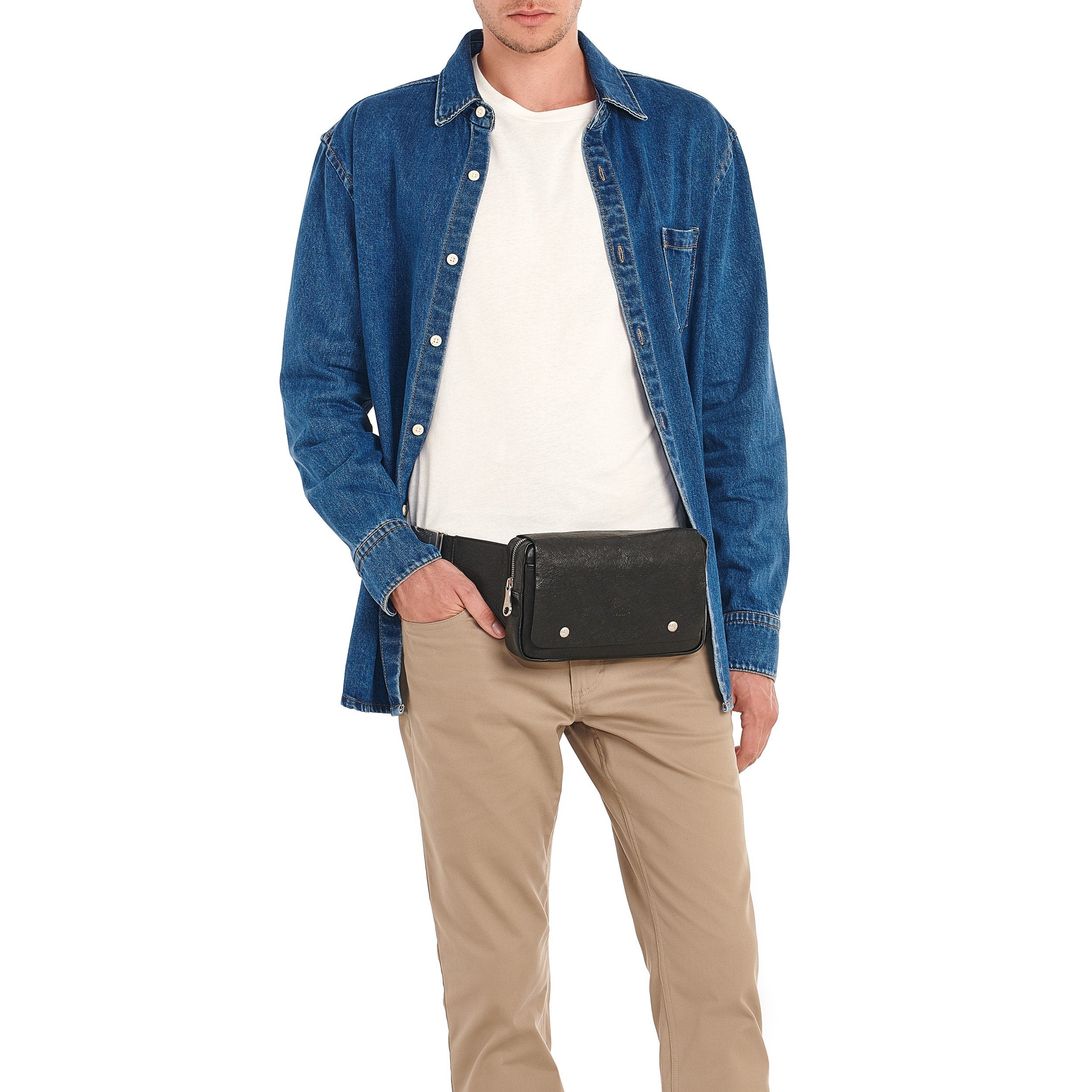 Brolio | Sac banane pour homme en cuir vintage couleur noir