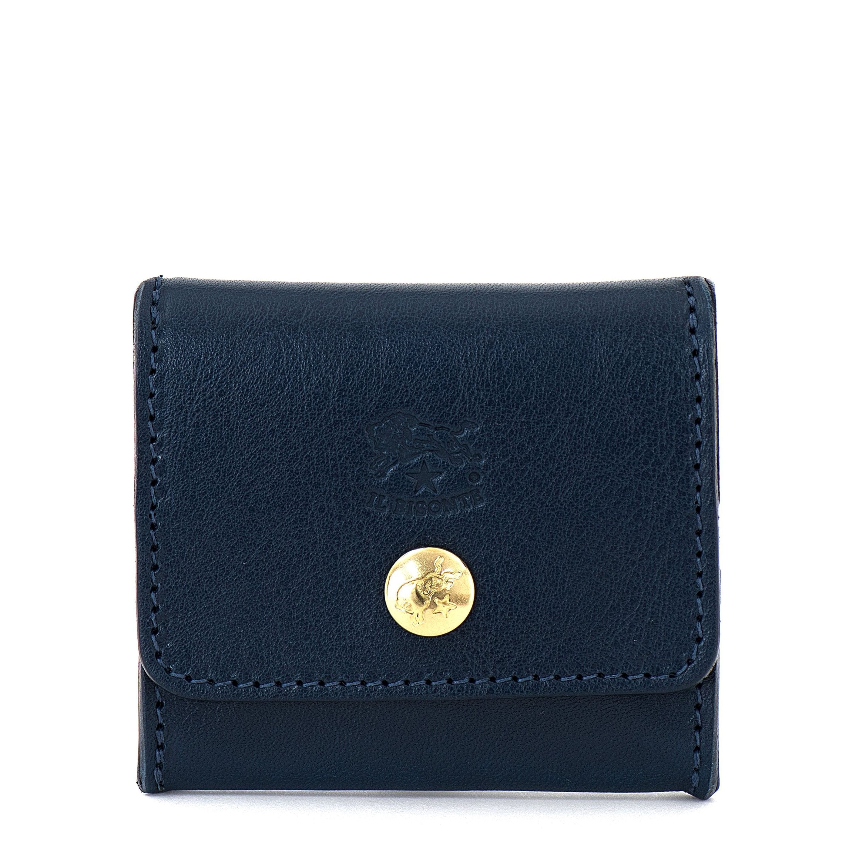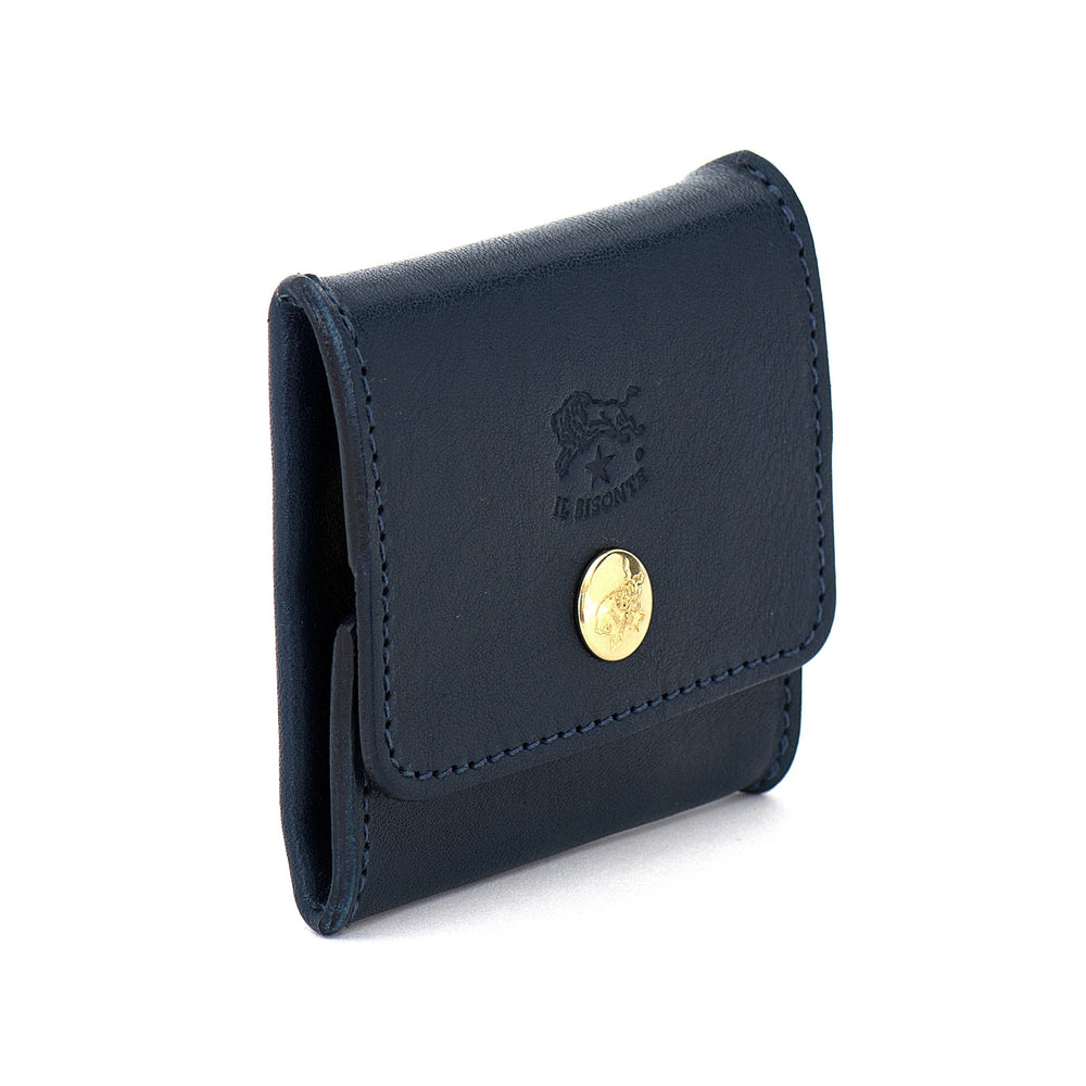 Porte-monnaie unisexe en cuir de vachette à tannage végétal. Produit en Italie par les maîtres artisans de la filière à km 30 de Il Bisonte.Grande ouverture. Fermeture à bouton pression en laiton. Bords francs.