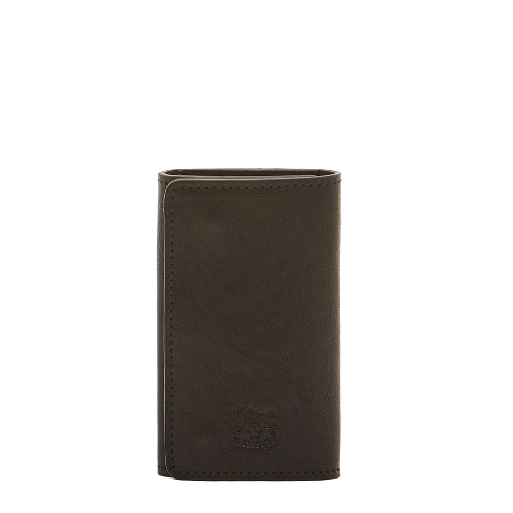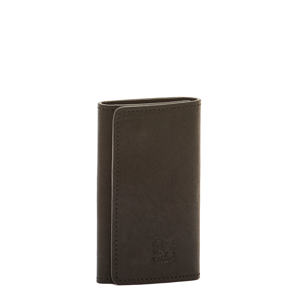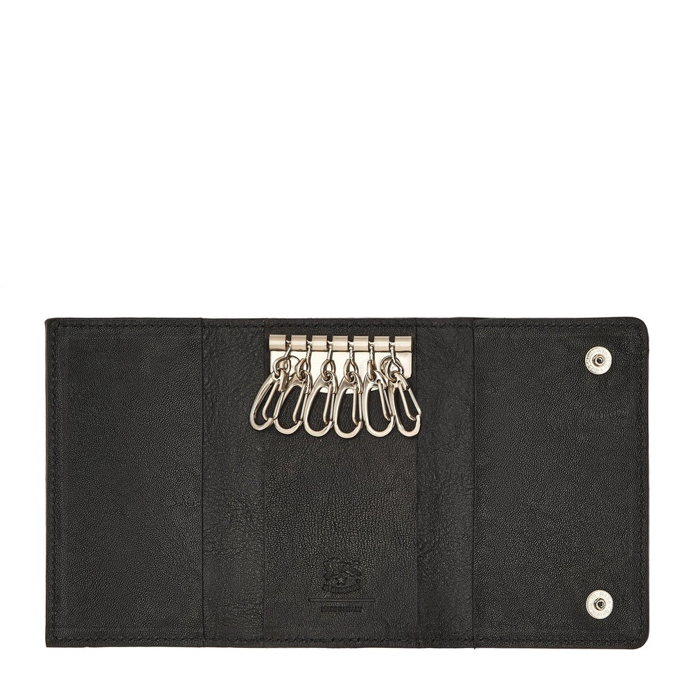 Porte-clefs en cuir de vachette vintage à tannage végétal. Fermeture à l'aide de deux boutons pression. 6 mousquetons pour les clefs. 100% made in Italy, ce porte-clefs est produit près de Florence par les maîtres artisans du circuit court de 30 km de Il Bisonte.