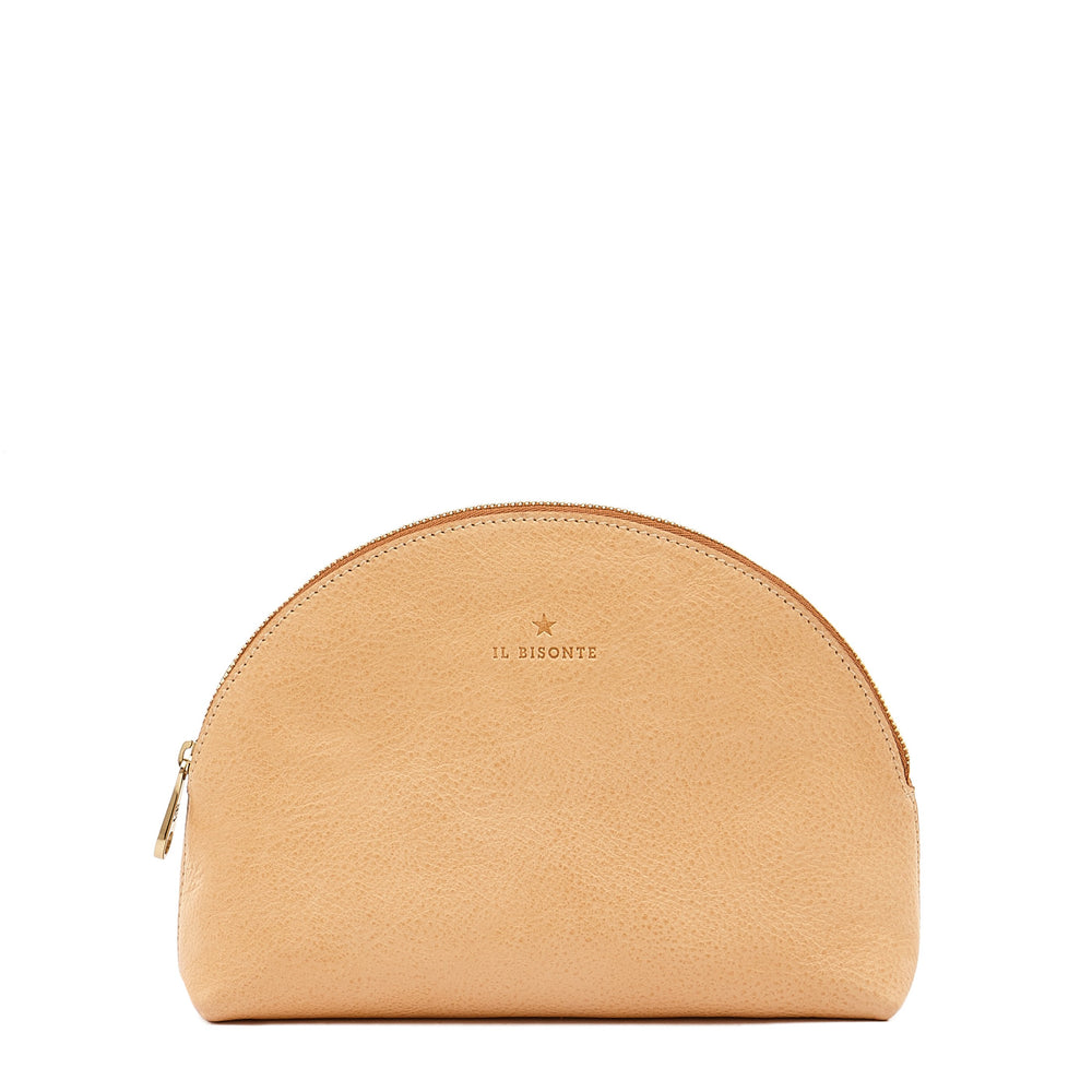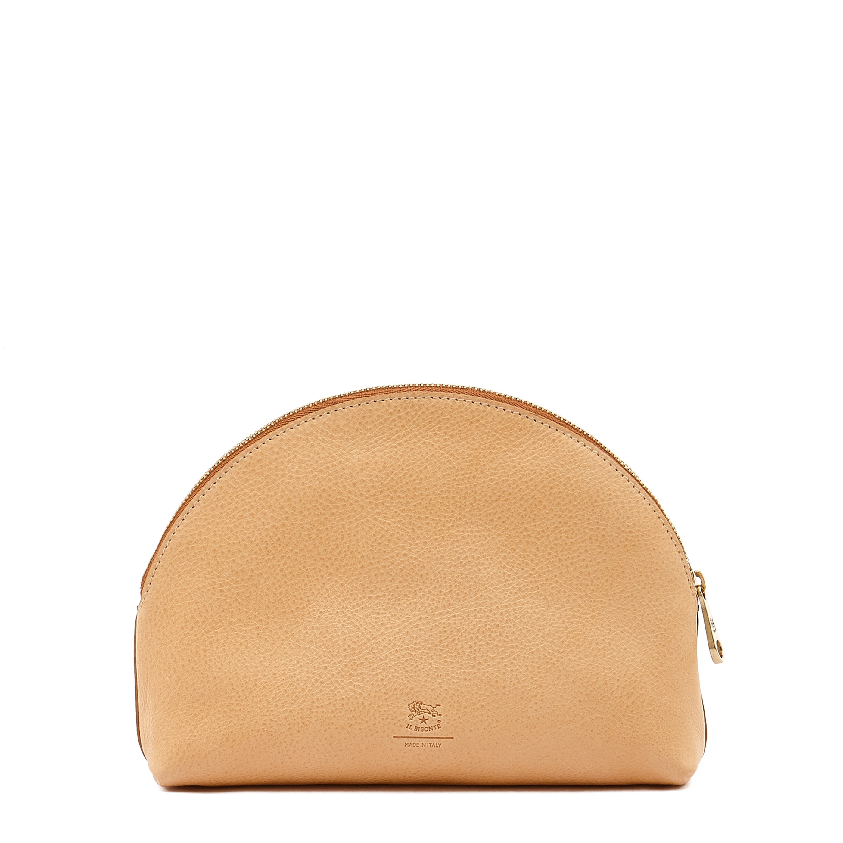 Pouch dal design essenziale in pelle conciata al vegetale. Chiusura con zip. Interno sfoderato. 100% made in Italy, è prodotta in provincia di Firenze dai maestri artigiani della filiera a KM30 de Il Bisonte.