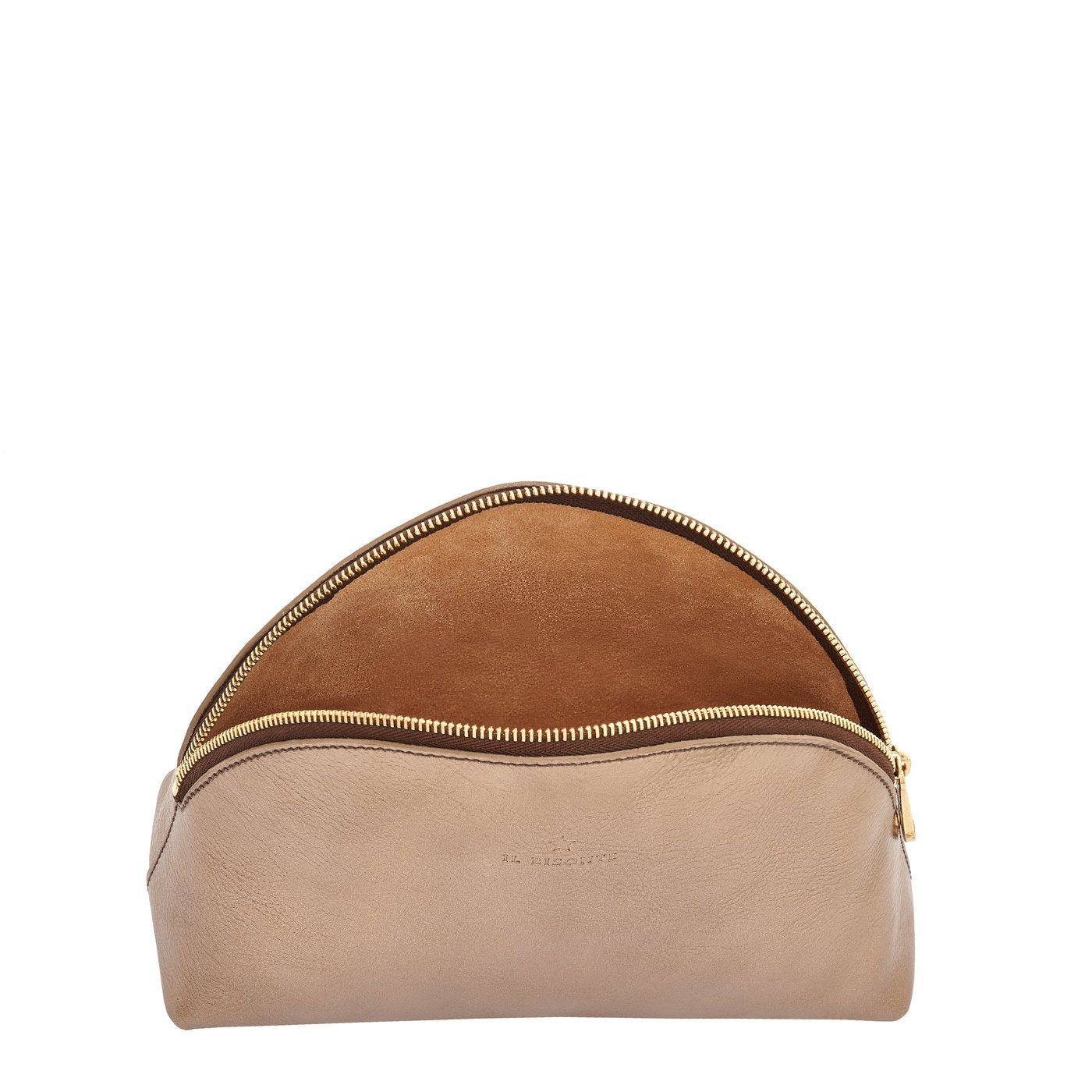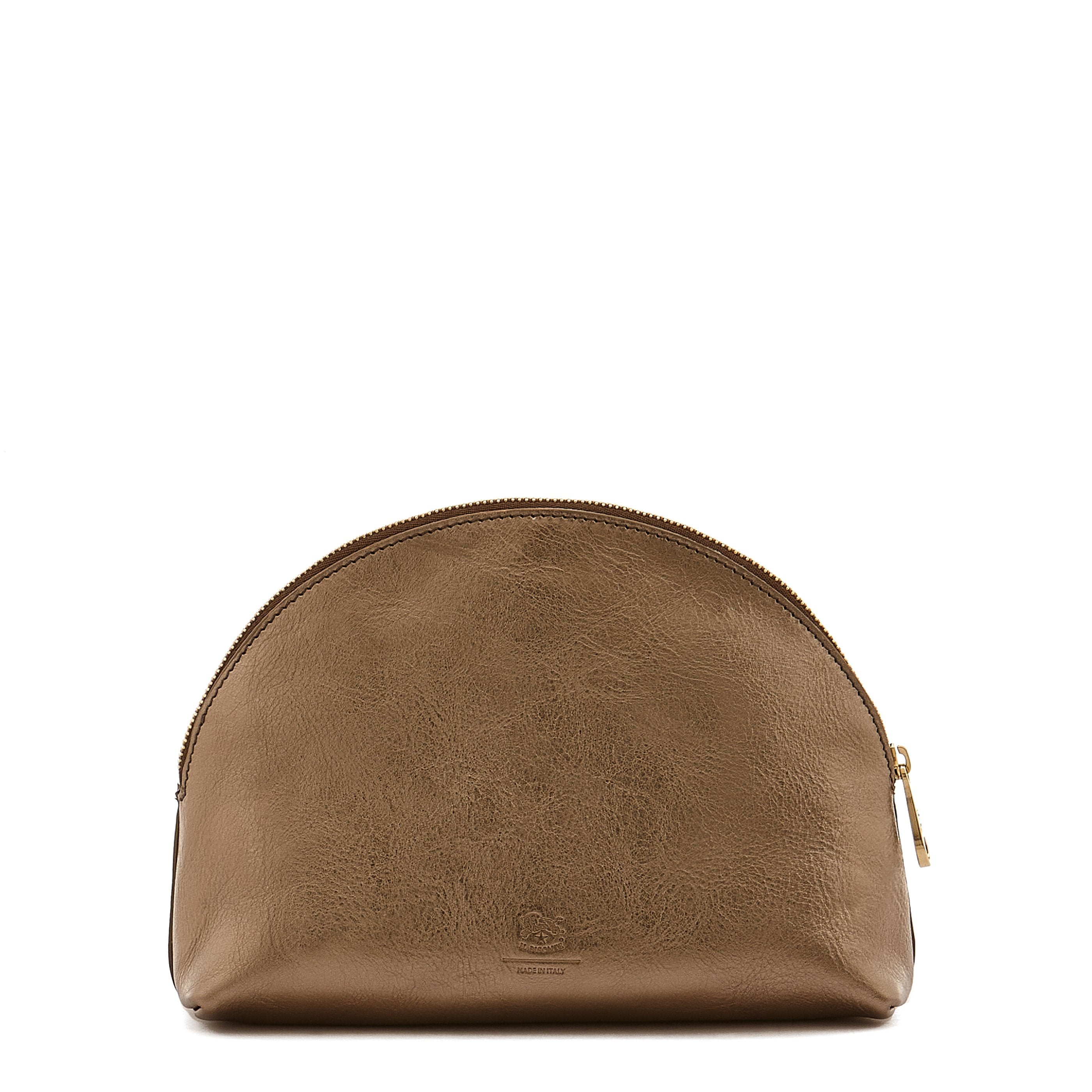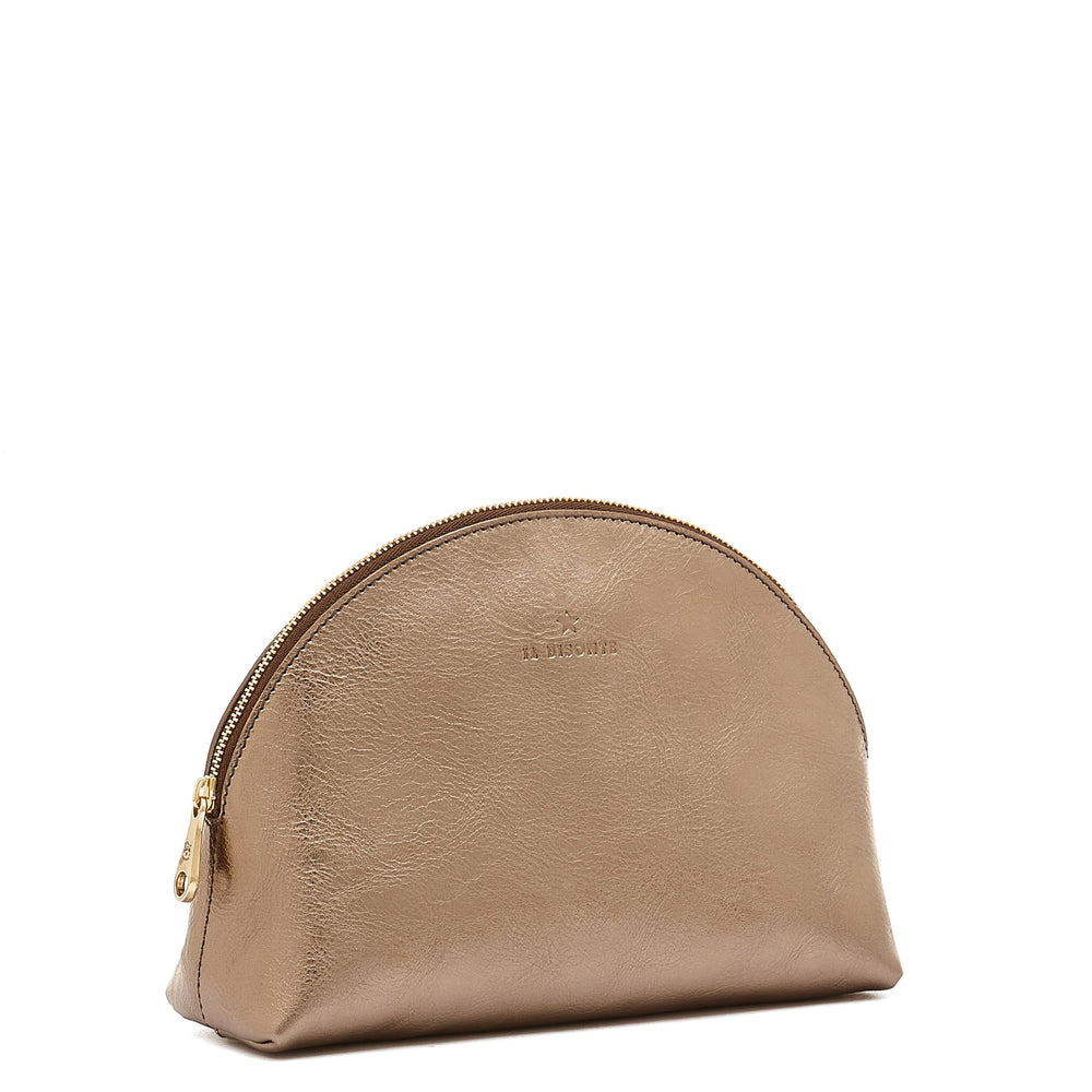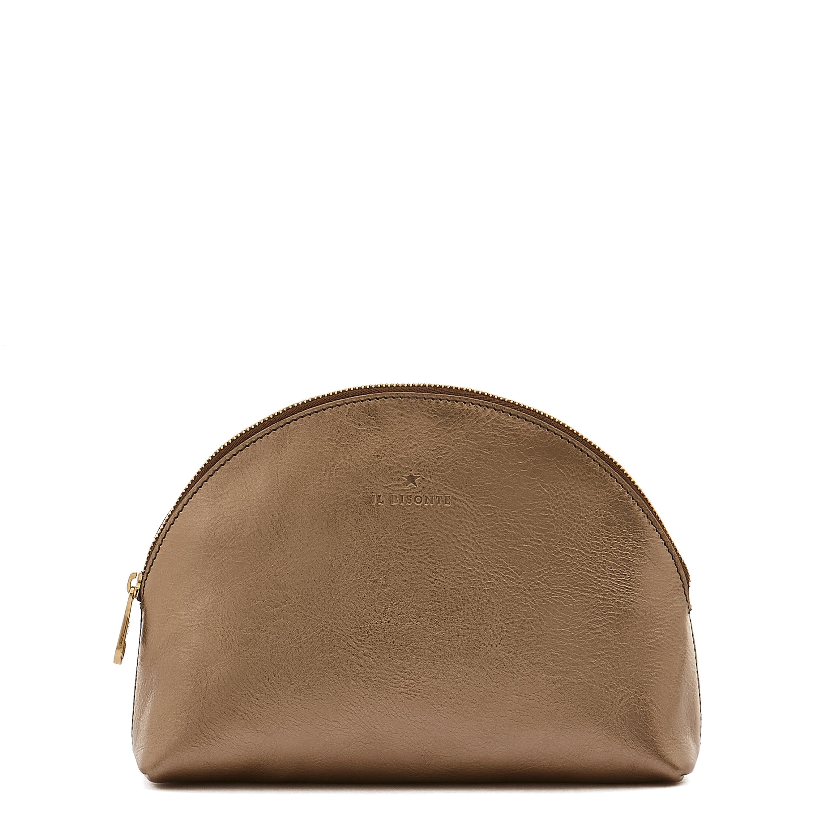 Pouch dal design essenziale in pelle metallizzata conciata al vegetale. Chiusura con zip. Interno sfoderato. 100% made in Italy, è prodotta in provincia di Firenze dai maestri artigiani della filiera a KM30 de Il Bisonte.