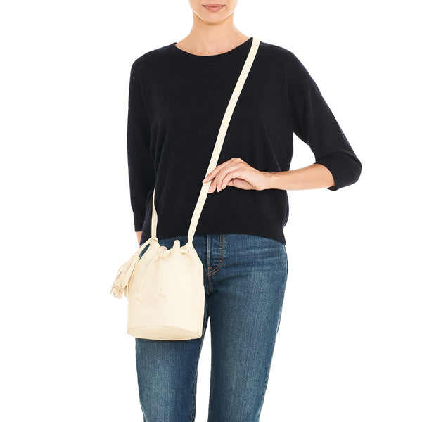 Silvia | Borsa a secchiello da donna in pelle colore latte