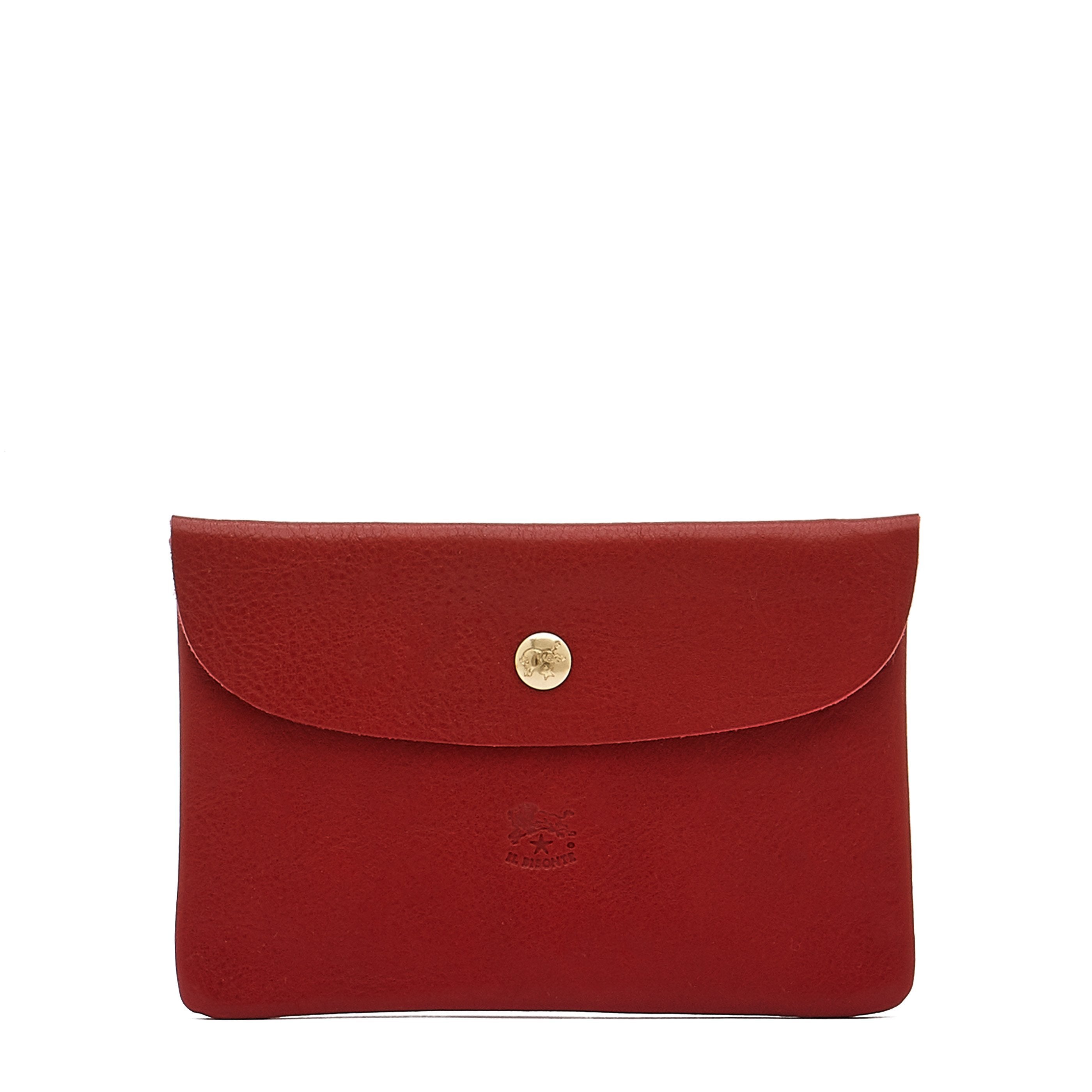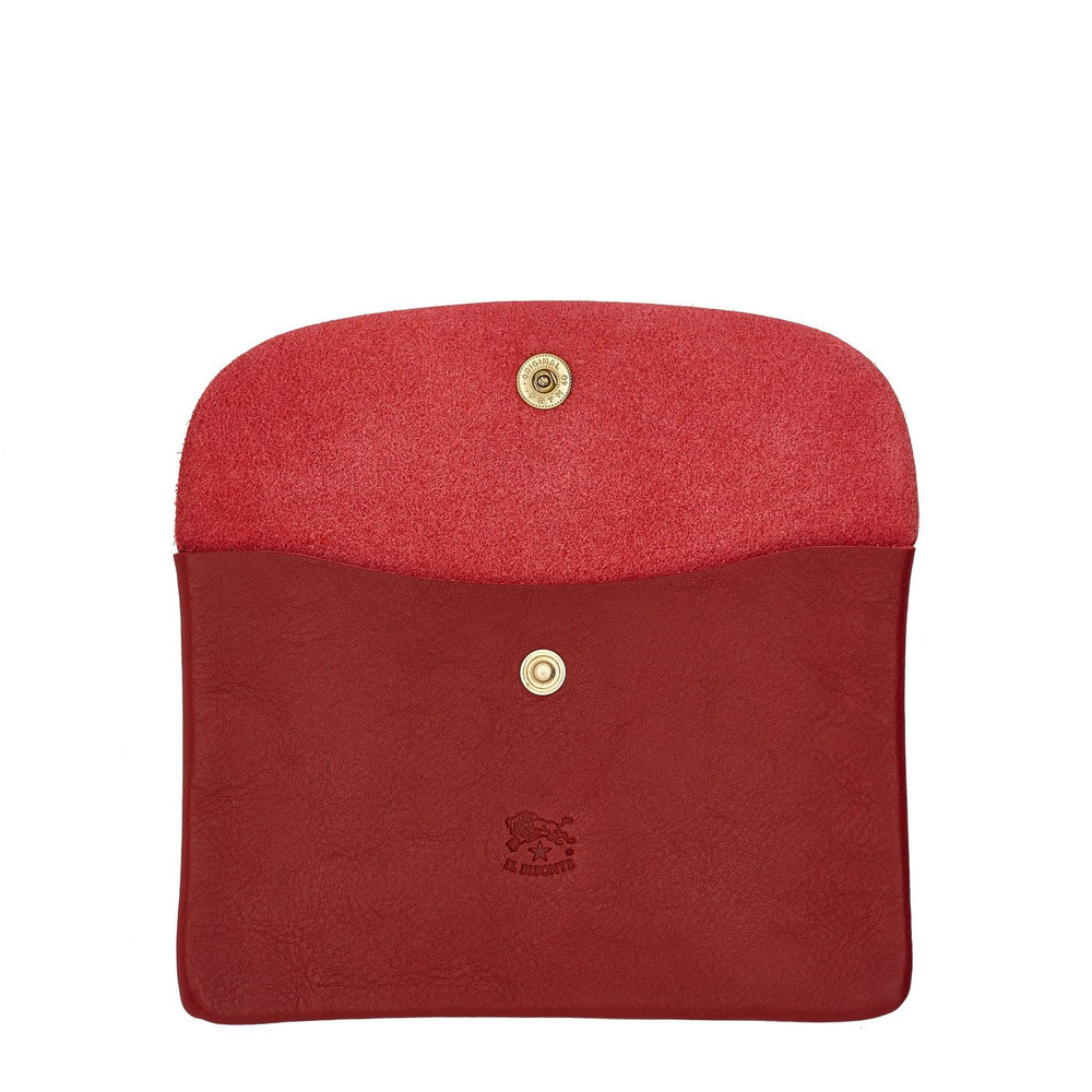 Bustina unisex in pelle di vacchetta conciata al vegetale. Prodotta in Italia dai maestri artigiani della filiera a km 30 de Il Bisonte. Chiusura con bottone automatico a vista di ottone, finitura oro. Interno sfoderato.