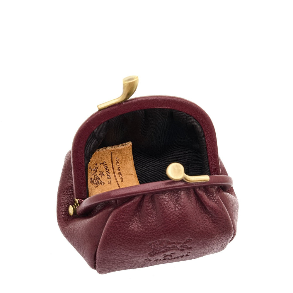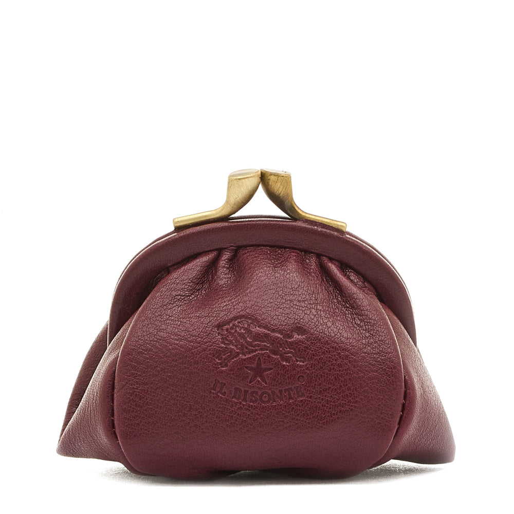 Porta monete di ispirazione rétro con chiusura a scatto e cuciture "a ombrello". Realizzato in morbida pelle di vacchetta conciata al vegetale, è prodotto in Italia dai maestri artigiani della filiera a km 30 de Il Bisonte. Chiusura a scatto di ottone. Interno foderato in tela di cotone.