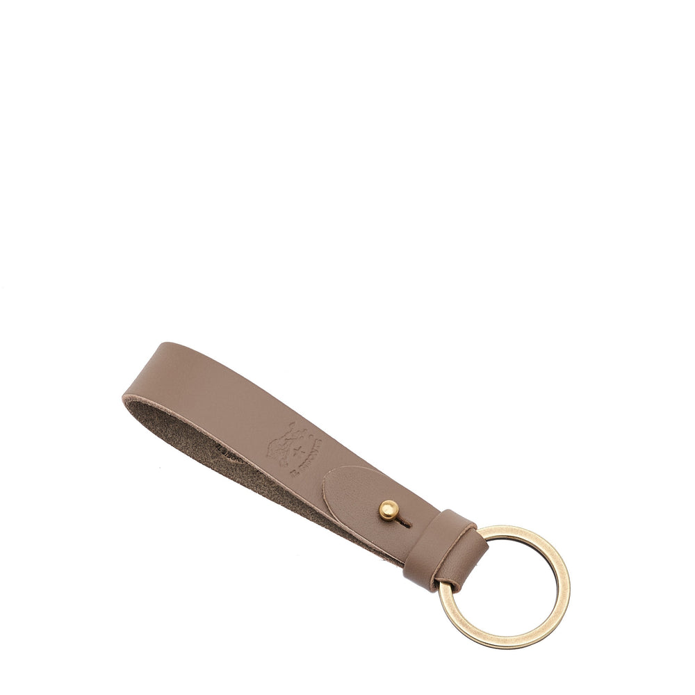 Porta chiavi in pelle di vacchetta conciata al vegetale con anello di ottone. Pratico ed essenziale, è prodotto in Italia dai maestri artigiani della filiera a km 30 de Il Bisonte. Chiusura con gemello di ottone. Interno sfoderato.