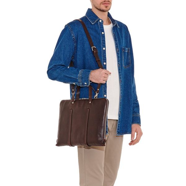 Trebbio | Valigetta da uomo in pelle invecchiata colore caffè