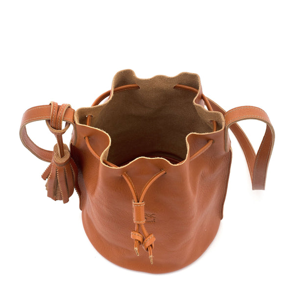 Silvia | Borsa a secchiello da donna in pelle colore caramello