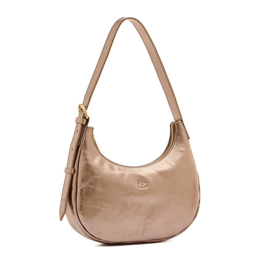 Belcanto | Borsa a spalla da donna in pelle metallizzata colore bronzo metallico