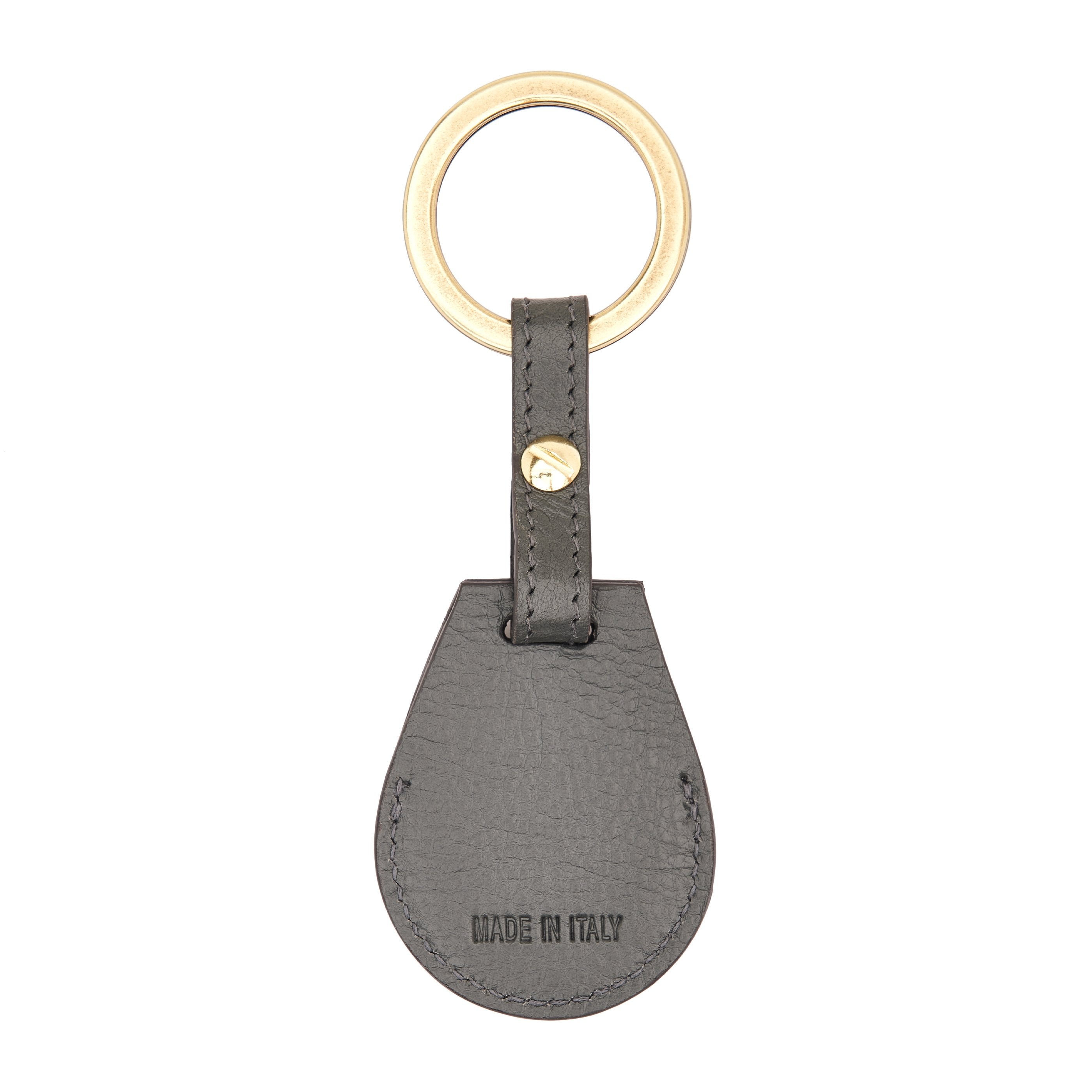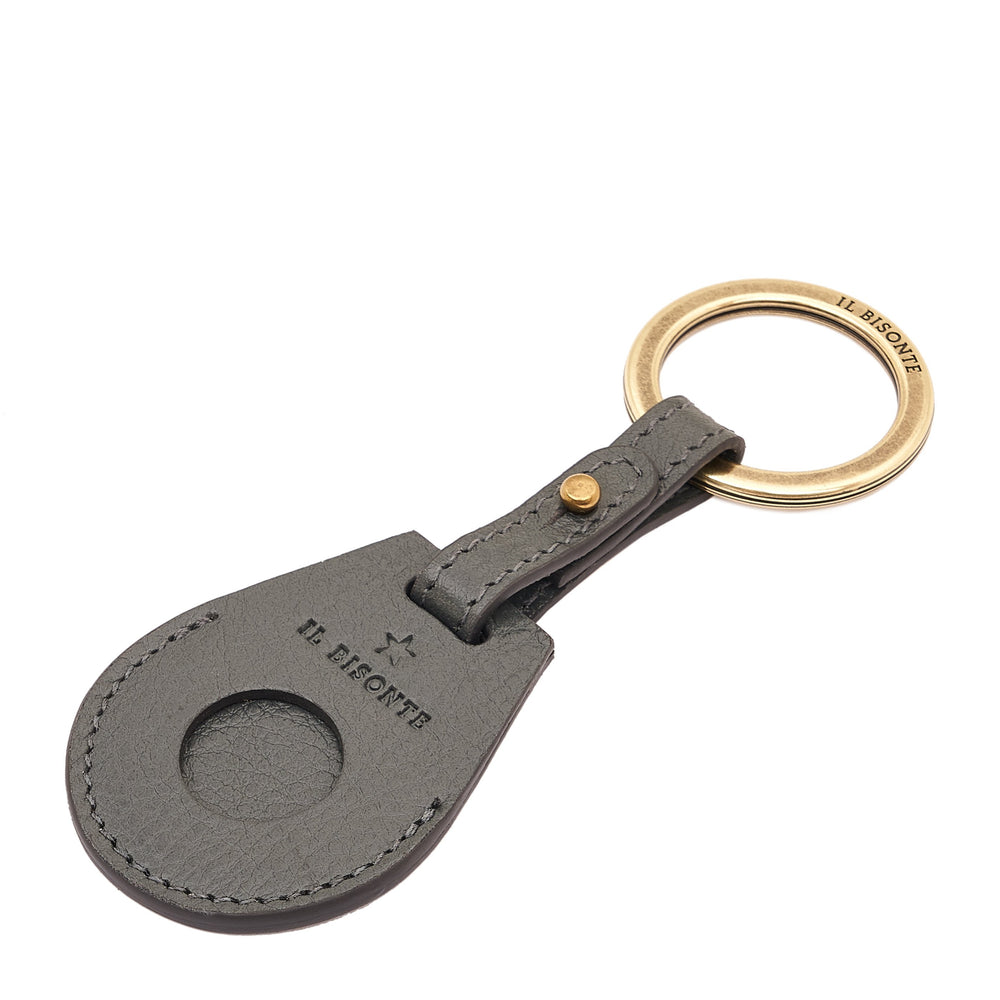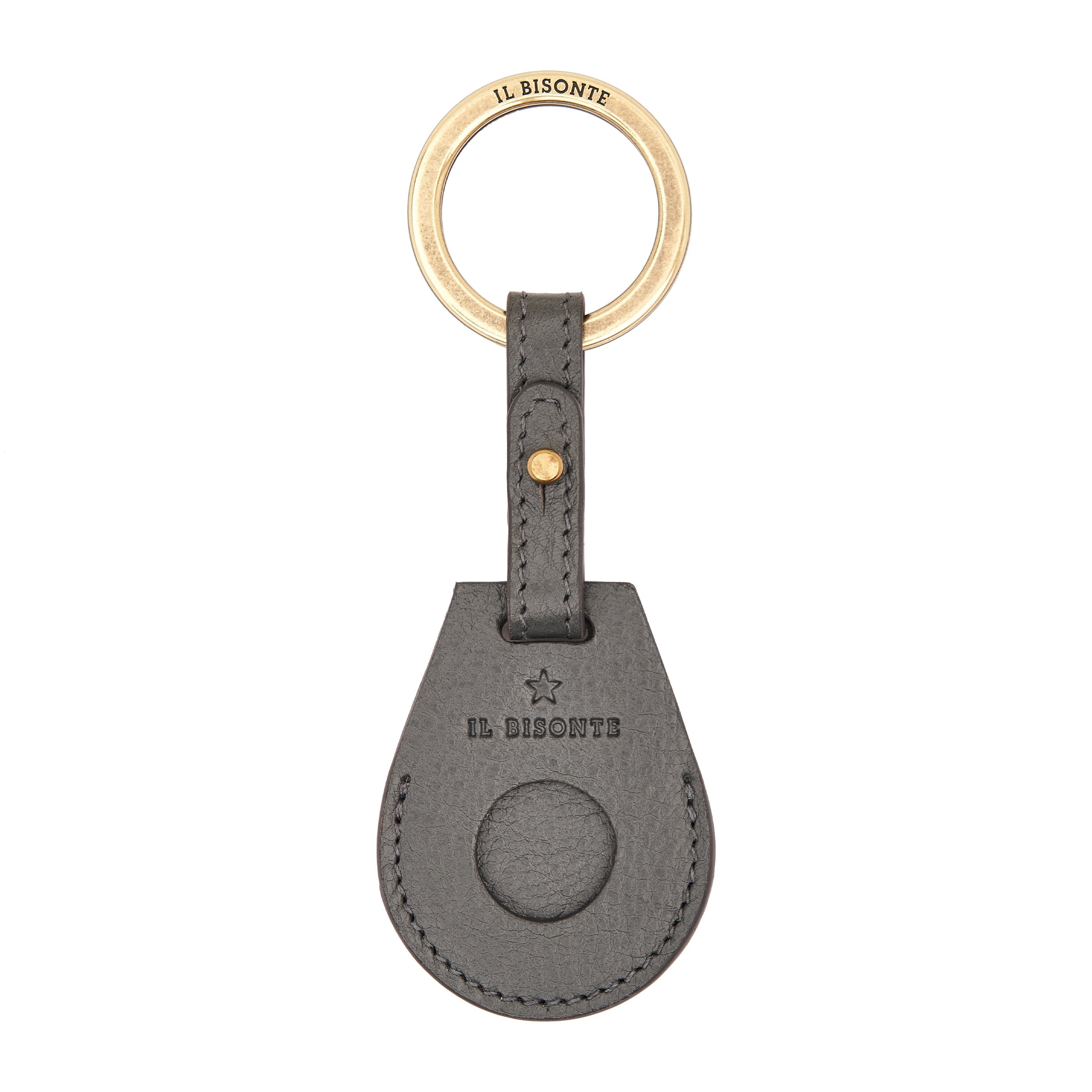 Portachiavi in pelle con anello di ottone con logo e con custodia per air tag chiusa con gemello.100% made in Italy.