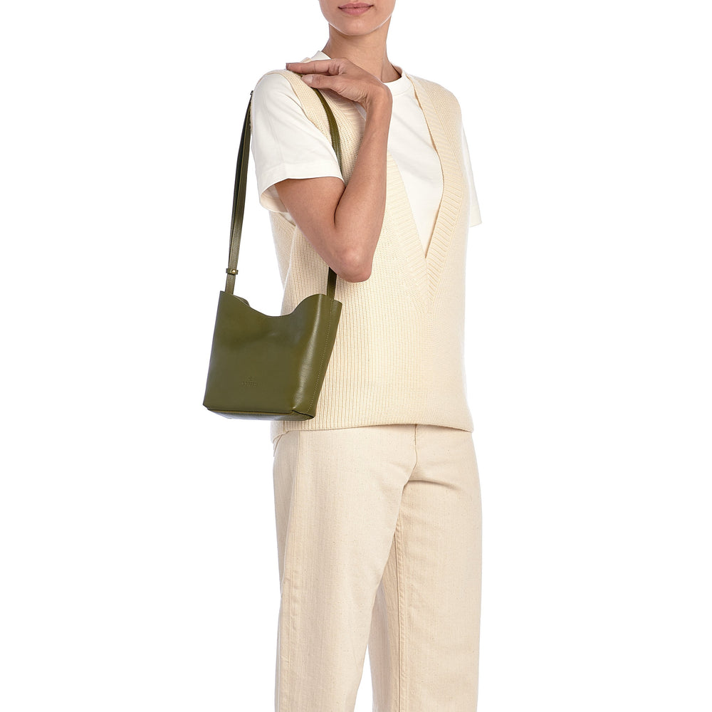 Le laudi | Borsa a tracolla da donna in pelle colore verde rugiada