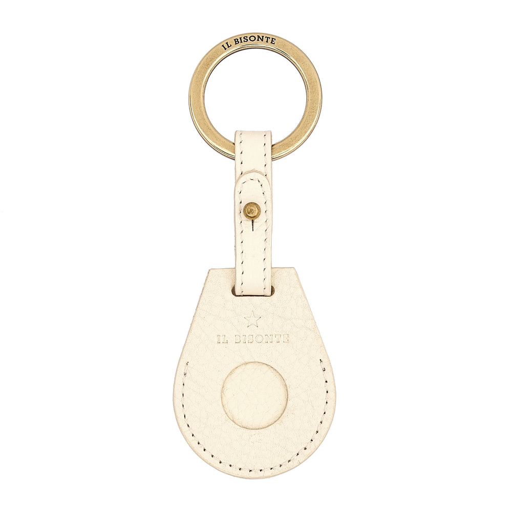 Portachiavi in pelle con anello di ottone con logo e con custodia per air tag chiusa con gemello.100% made in Italy.