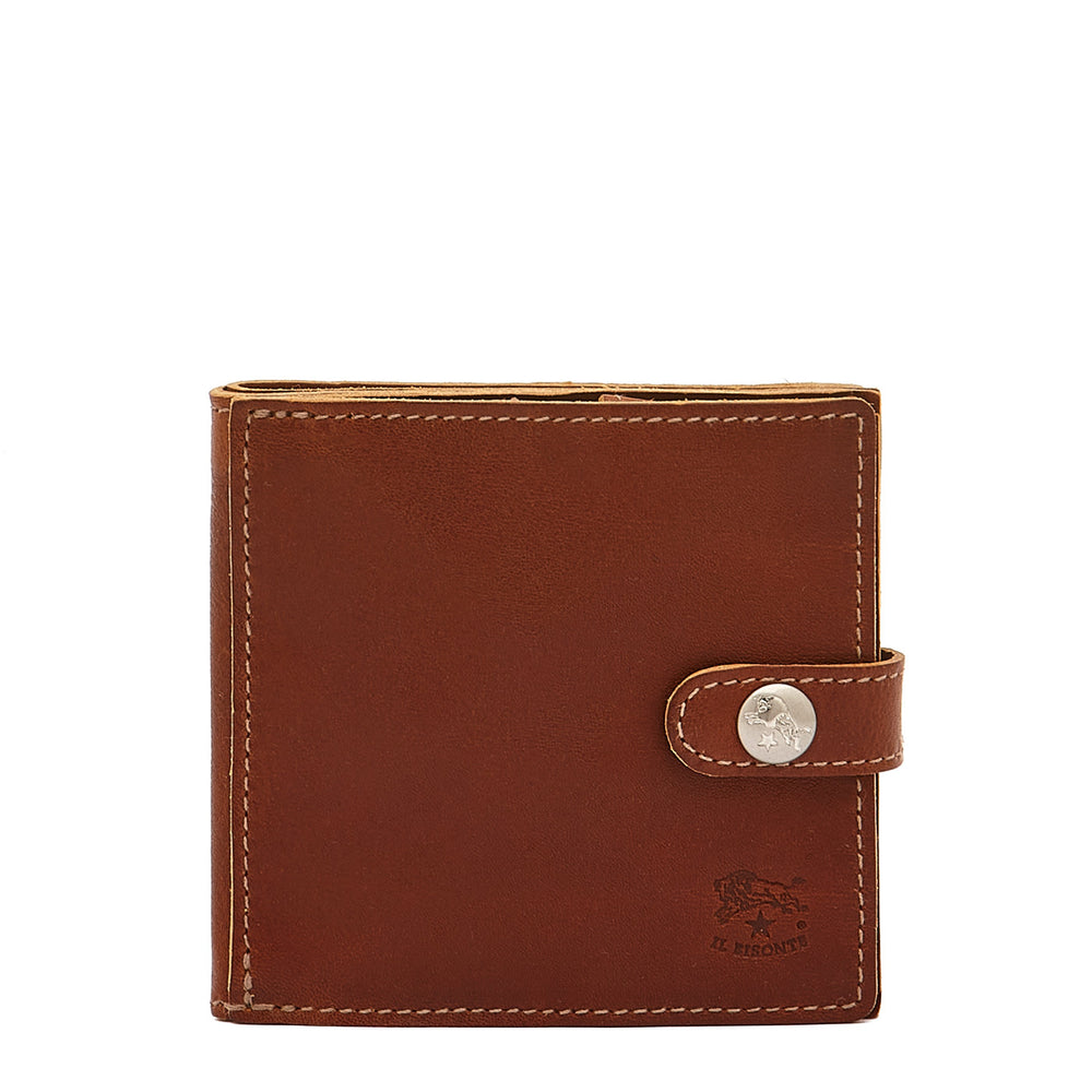Portafoglio a libro da uomo in pelle invecchiata colore seppia