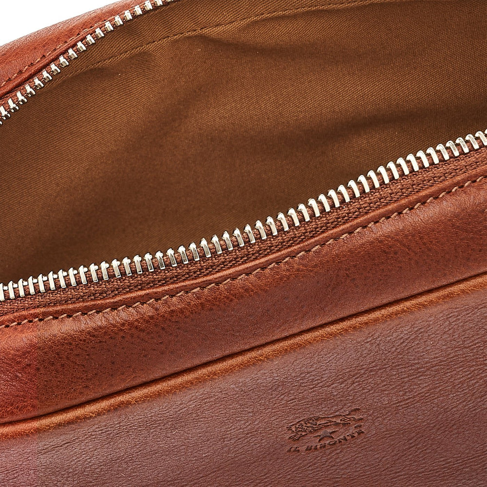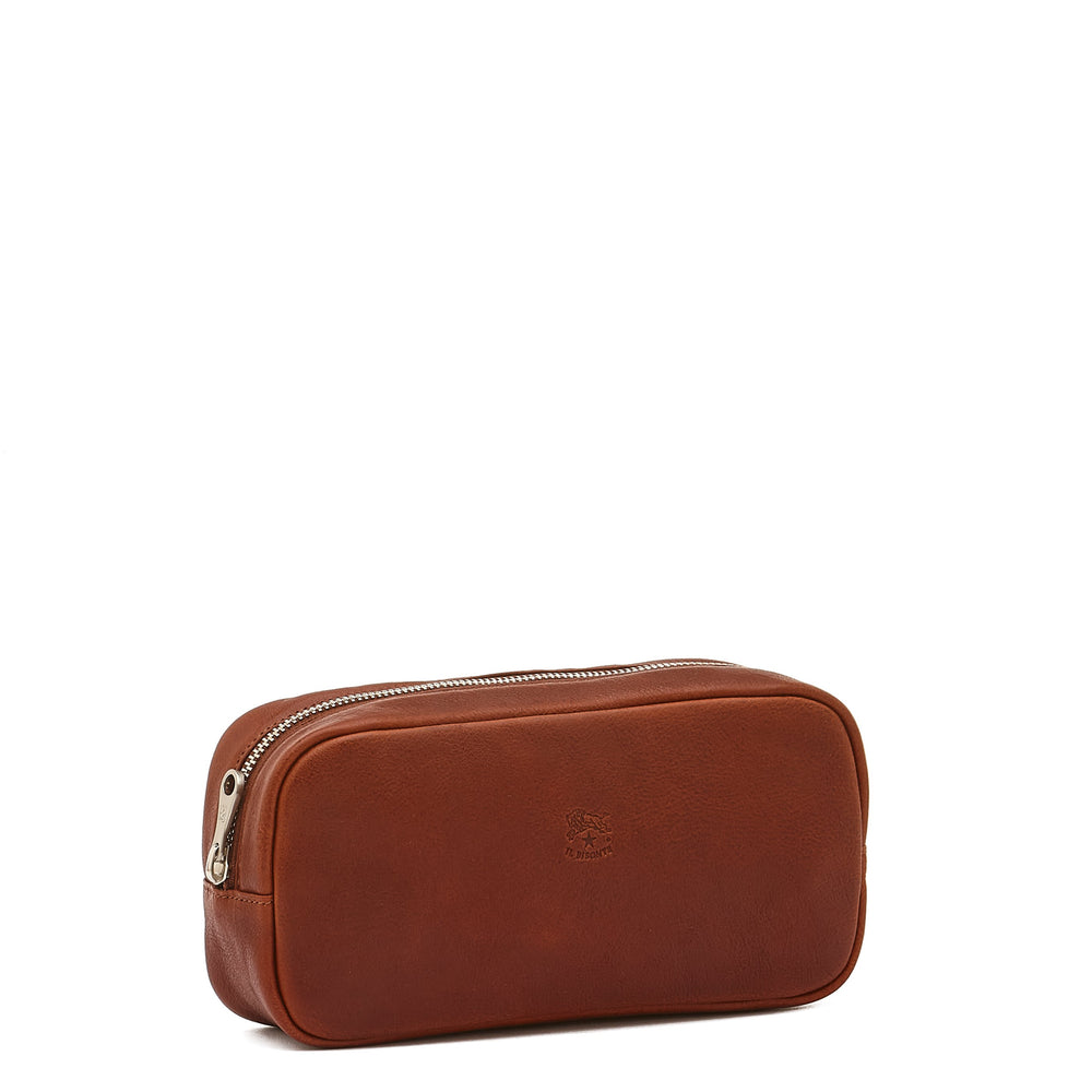 Astuccio essenziale in pelle di vacchetta vintage conciata al vegetale, realizzato con grande cura artigianale di ogni dettaglio. Chiusura con zip. Interno foderato in tela di cotone. 100% made in Italy, è prodotto in provincia di Firenze dai maestri artigiani della filiera a KM30 de Il Bisonte.