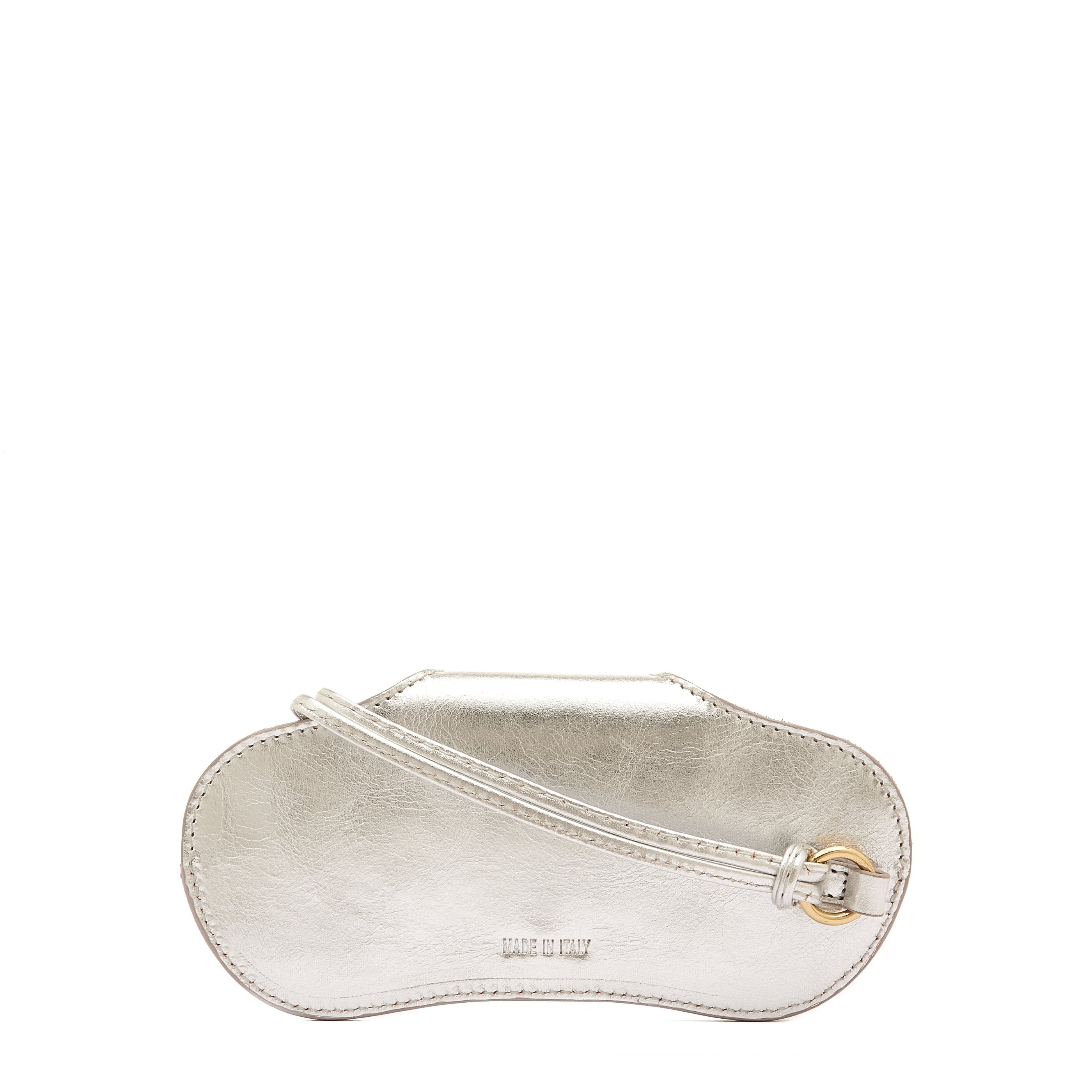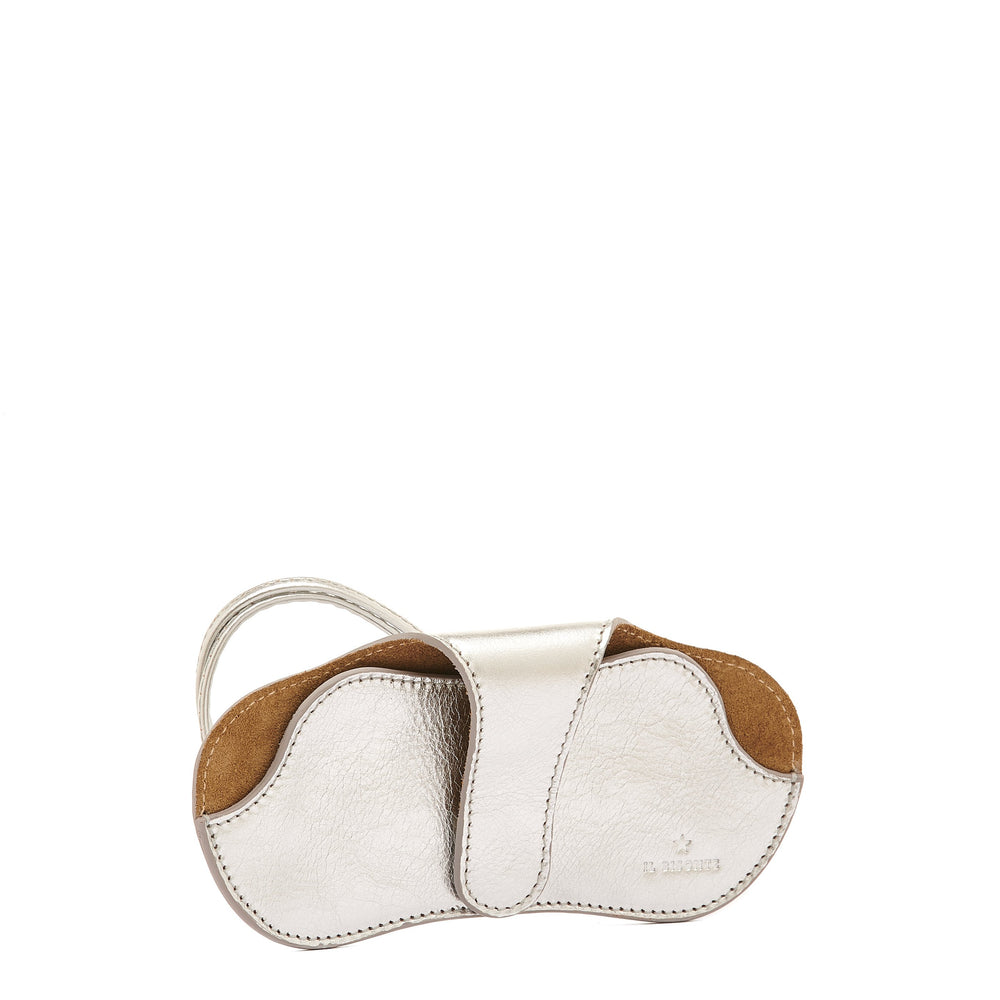 Nina | Custodia Occhiali da donna in pelle metallizzata colore argento